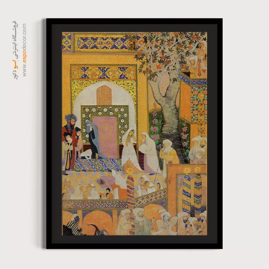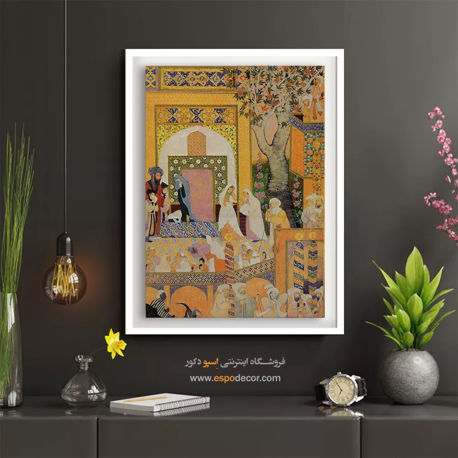 در ظرافت خطوط و درخشش رنگها، روایت هزارساله هنر مینیاتور و نگارگری ایرانی زنده میشود. این تابلو نقاشی ایرانی، یادگاری فاخر از میراث فرهنگی ایران برای خانهای آراسته و روحنواز است.