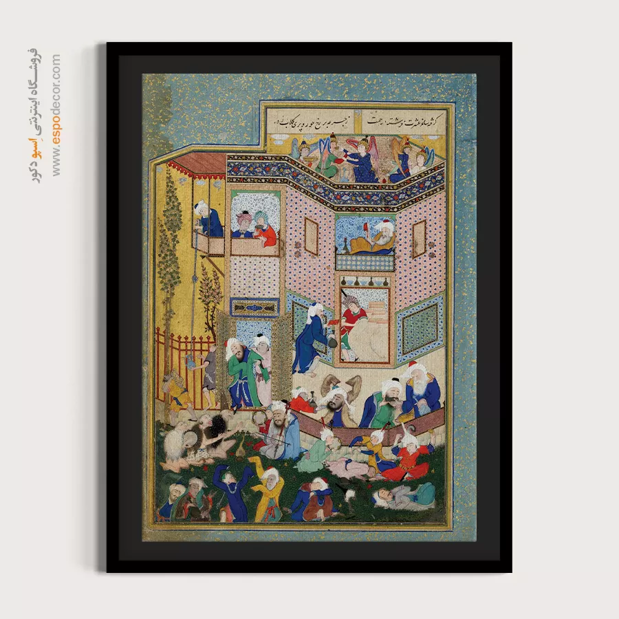 در ظرافت خطوط و درخشش رنگها، روایت هزارساله هنر مینیاتور و نگارگری ایرانی زنده میشود. این تابلو نقاشی ایرانی، یادگاری فاخر از میراث فرهنگی ایران برای خانهای آراسته و روحنواز است.