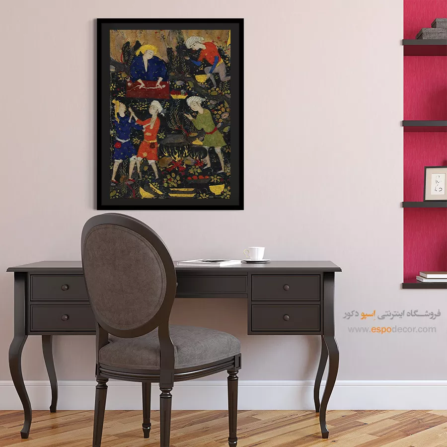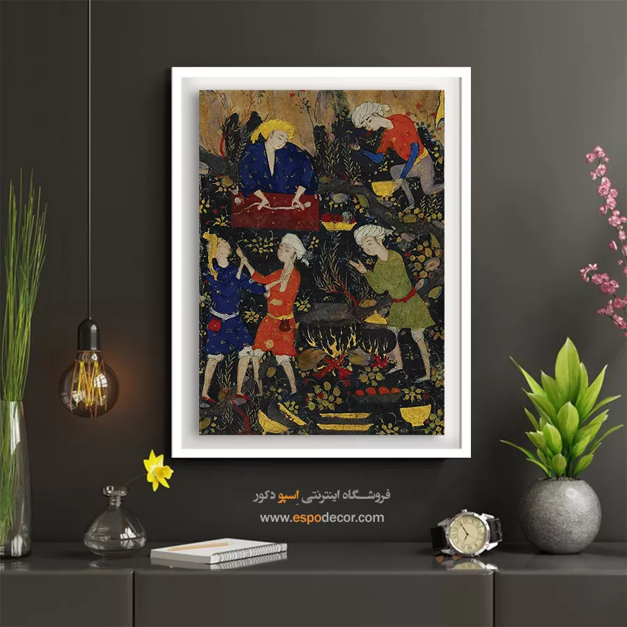 در ظرافت خطوط و درخشش رنگ‌ها، روایت هزارساله هنر مینیاتور و نگارگری ایرانی زنده می‌شود. این تابلو نقاشی ایرانی، یادگاری فاخر از میراث فرهنگی ایران برای خانه‌ای آراسته و روح‌نواز است.