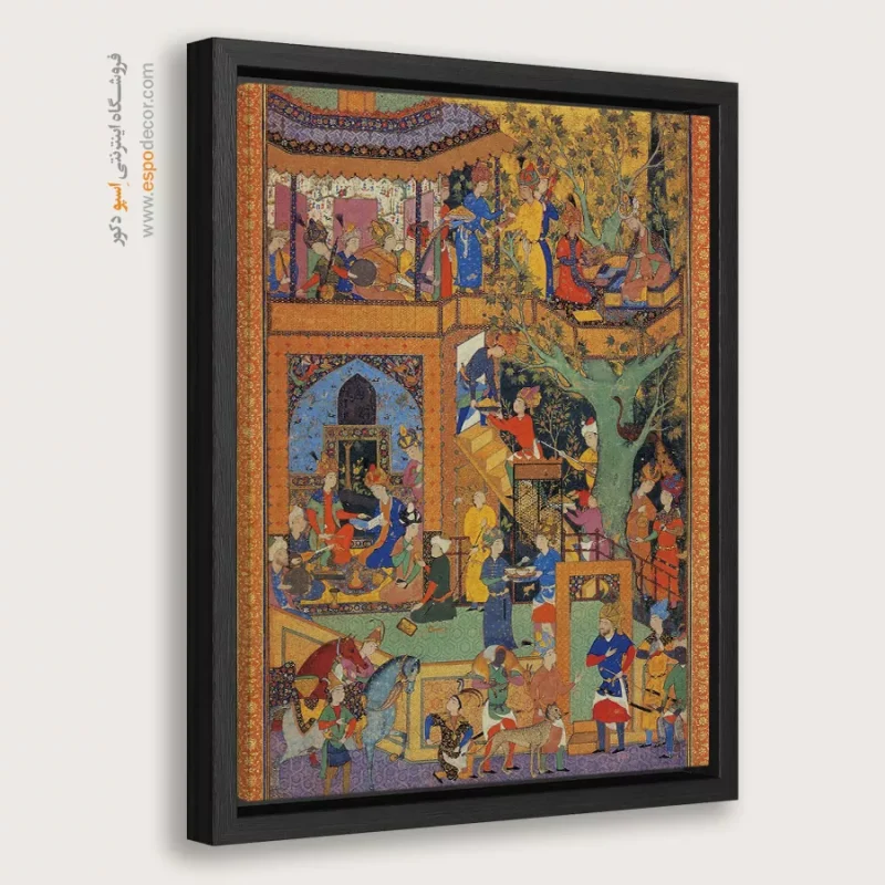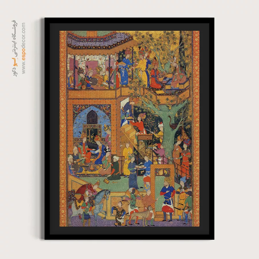 در ظرافت خطوط و درخشش رنگها، روایت هزارساله هنر مینیاتور و نگارگری ایرانی زنده میشود. این تابلو نقاشی ایرانی، یادگاری فاخر از میراث فرهنگی ایران برای خانهای آراسته و روحنواز است.