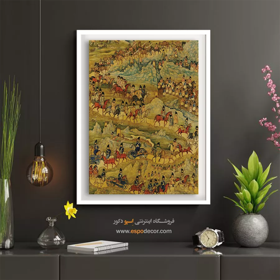 در دل هر نقش و رنگ، قصه‌ای کهن از سرزمین شعر و شکوه نهفته است. این تابلو نقاشی ایرانی برگرفته از اصالت نگارگری و ظرافت مینیاتورهای ماندگار، پلی میان تاریخ و دنیای امروز می‌سازد؛ گویی پنجره‌ای است به جهانی که در آن زیبایی و معنویت هم‌نشین‌اند. هر تابلو، برگ زرینی از نسخ خطی و هنر سنتی ایرانی است؛ سرشار از لطافت خطوط و رنگ‌هایی که به آرامی با چشم و دل سخن می‌گویند. با تماشای آن، می‌توان به عمق فرهنگ ایرانی سفر کرد و لمس کرد که چگونه گذر قرن‌ها نتوانسته فروغ این هنر جاودان را خاموش سازد. این تابلوها بر روی بوم‌های باکیفیت چاپ می‌شوند؛ بافت لطیف بوم و رنگ‌های زنده، جلوه‌ای طبیعی و هنری به اثر می‌بخشند. رنگ‌ها به گونه‌ای انتخاب شده‌اند که درخشان، ماندگار و مقاوم در برابر نور باشند؛ تا سالیان سال، زیبایی اصیل ایرانی در فضای خانه یا محل کارتان بدرخشد. فریم‌های محکم، ساختاری استوار به تابلو می‌بخشند و با طراحی ظریف خود، بر شکوه اثر می‌افزایند. سبک بودن تابلو و امکان نصب آسان، آن را برای هر نوع دکوراسیون مدرن یا کلاسیک مناسب می‌سازد. از اتاق نشیمن تا دفتر کار، این آثار همچون نگینی فاخر بر دیوار خواهند درخشید. هر اثر، فرصتی برای لمس دوباره‌ی هنر نگارگری و مینیاتور ایرانی است؛ هنری که در جزئی‌ترین خطوط، روح شاعرانه ایرانیان را بازمی‌تاباند. این تابلوها نه تنها تزیینی، بلکه یادآور هویت فرهنگی و زیبایی بی‌زمان ایران‌زمین‌اند. اگر به دنبال هدیه‌ای ماندگار یا اثری منحصر به فرد برای فضای زندگی‌تان هستید، این تابلو بوم نگارگری ایرانی انتخابی بی‌همتاست. ترکیب اصالت تاریخی با کیفیت مدرن چاپ، ارزش هنری و زیبایی را در یک قاب جاودانه به شما تقدیم می‌کند.