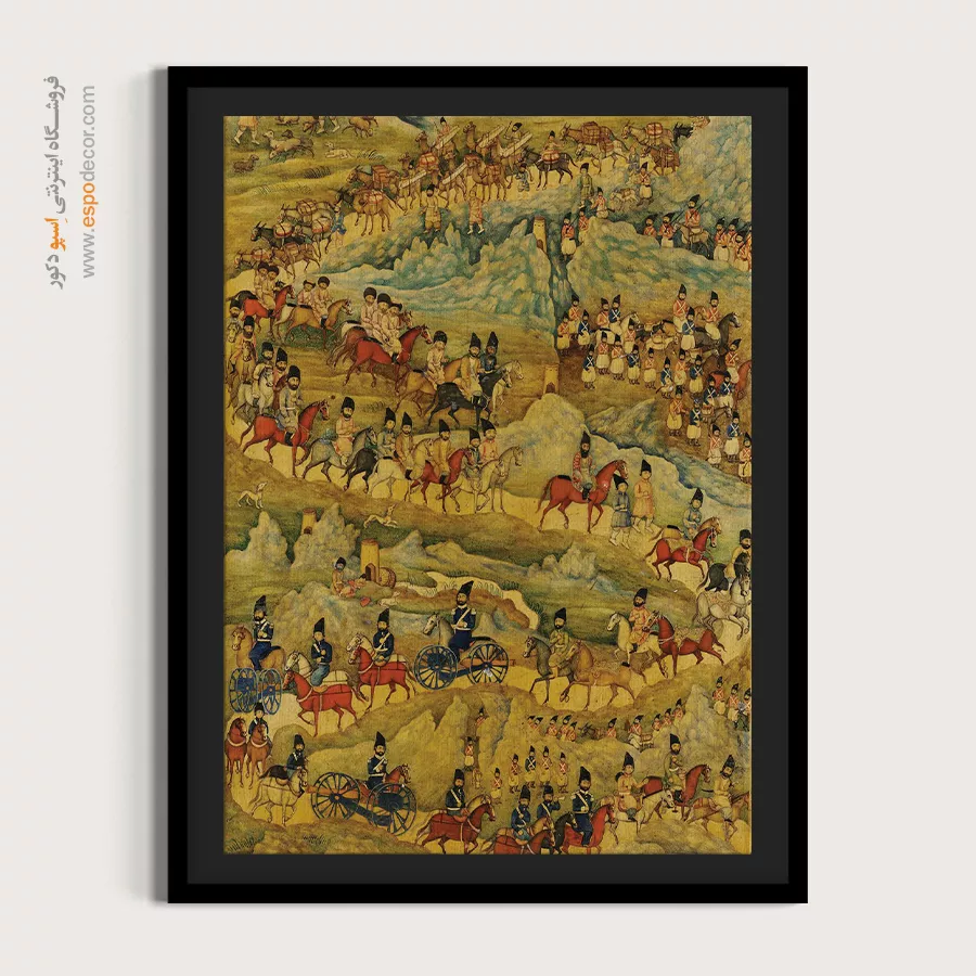در دل هر نقش و رنگ، قصه‌ای کهن از سرزمین شعر و شکوه نهفته است. این تابلو نقاشی ایرانی برگرفته از اصالت نگارگری و ظرافت مینیاتورهای ماندگار، پلی میان تاریخ و دنیای امروز می‌سازد؛ گویی پنجره‌ای است به جهانی که در آن زیبایی و معنویت هم‌نشین‌اند.هر تابلو، برگ زرینی از نسخ خطی و هنر سنتی ایرانی است؛ سرشار از لطافت خطوط و رنگ‌هایی که به آرامی با چشم و دل سخن می‌گویند. با تماشای آن، می‌توان به عمق فرهنگ ایرانی سفر کرد و لمس کرد که چگونه گذر قرن‌ها نتوانسته فروغ این هنر جاودان را خاموش سازد.این تابلوها بر روی بوم‌های باکیفیت چاپ می‌شوند؛ بافت لطیف بوم و رنگ‌های زنده، جلوه‌ای طبیعی و هنری به اثر می‌بخشند. رنگ‌ها به گونه‌ای انتخاب شده‌اند که درخشان، ماندگار و مقاوم در برابر نور باشند؛ تا سالیان سال، زیبایی اصیل ایرانی در فضای خانه یا محل کارتان بدرخشد.فریم‌های محکم، ساختاری استوار به تابلو می‌بخشند و با طراحی ظریف خود، بر شکوه اثر می‌افزایند. سبک بودن تابلو و امکان نصب آسان، آن را برای هر نوع دکوراسیون مدرن یا کلاسیک مناسب می‌سازد. از اتاق نشیمن تا دفتر کار، این آثار همچون نگینی فاخر بر دیوار خواهند درخشید.هر اثر، فرصتی برای لمس دوباره‌ی هنر نگارگری و مینیاتور ایرانی است؛ هنری که در جزئی‌ترین خطوط، روح شاعرانه ایرانیان را بازمی‌تاباند. این تابلوها نه تنها تزیینی، بلکه یادآور هویت فرهنگی و زیبایی بی‌زمان ایران‌زمین‌اند.اگر به دنبال هدیه‌ای ماندگار یا اثری منحصر به فرد برای فضای زندگی‌تان هستید، این تابلو بوم نگارگری ایرانی انتخابی بی‌همتاست. ترکیب اصالت تاریخی با کیفیت مدرن چاپ، ارزش هنری و زیبایی را در یک قاب جاودانه به شما تقدیم می‌کند.