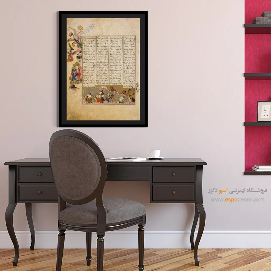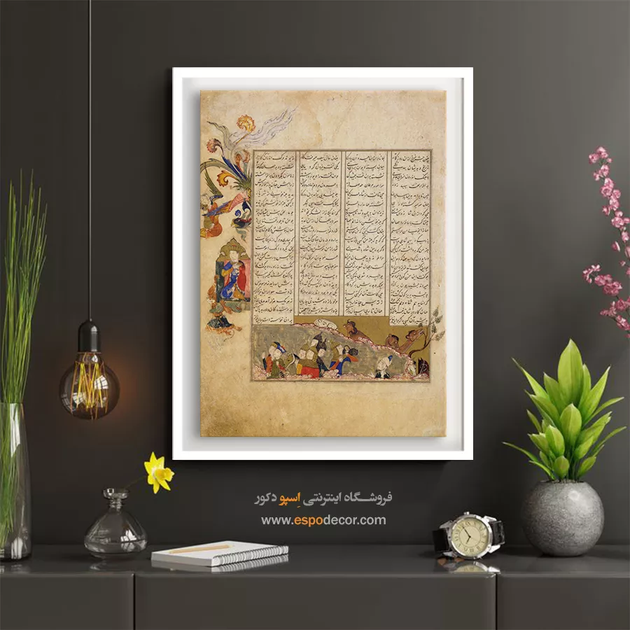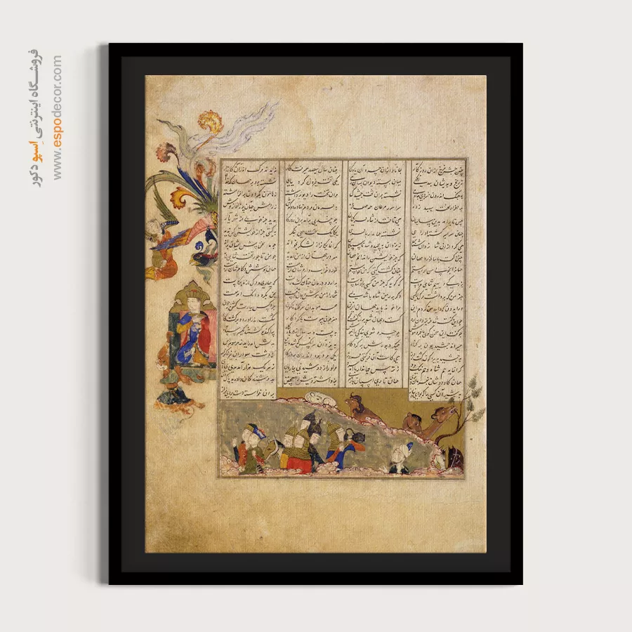 در ظرافت خطوط و درخشش رنگها، روایت هزارساله هنر مینیاتور و نگارگری ایرانی زنده میشود. این تابلو نقاشی ایرانی، یادگاری فاخر از میراث فرهنگی ایران برای خانهای آراسته و روحنواز است.