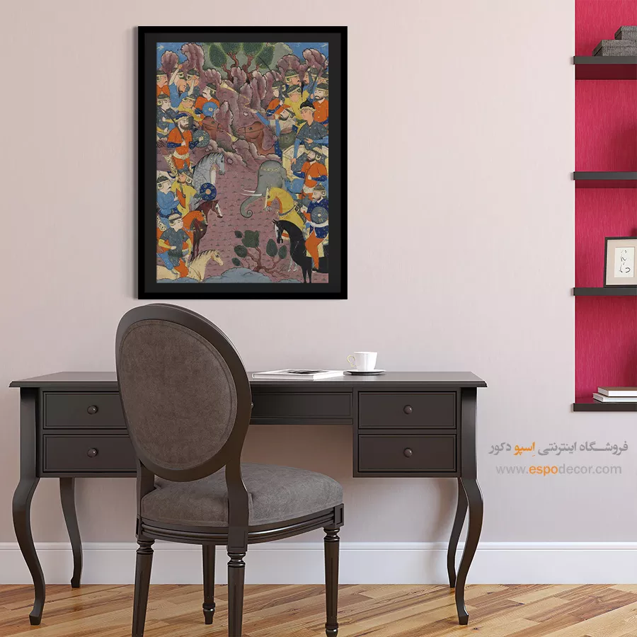 در ظرافت خطوط و درخشش رنگها، روایت هزارساله هنر مینیاتور و نگارگری ایرانی زنده میشود. این تابلو نقاشی ایرانی، یادگاری فاخر از میراث فرهنگی ایران برای خانهای آراسته و روحنواز است.