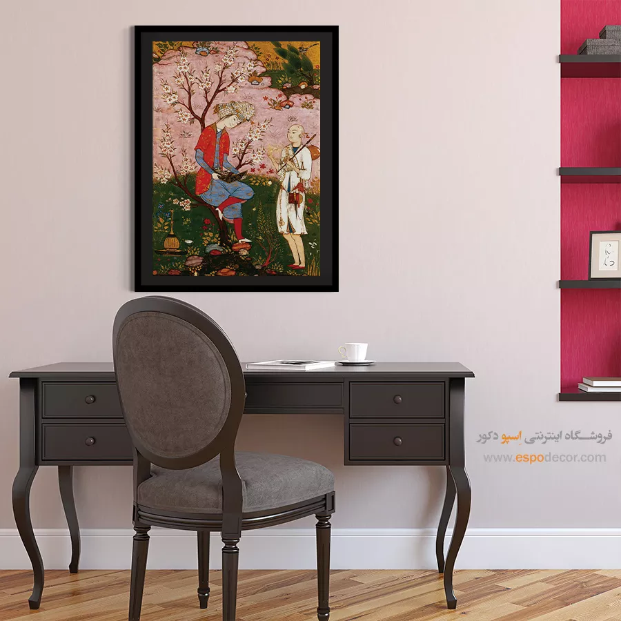 در ظرافت خطوط و درخشش رنگ‌ها، روایت هزارساله هنر مینیاتور و نگارگری ایرانی زنده می‌شود. این تابلو نقاشی ایرانی، یادگاری فاخر از میراث فرهنگی ایران برای خانه‌ای آراسته و روح‌نواز است.