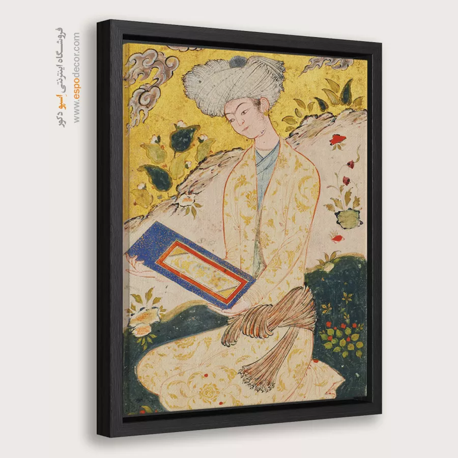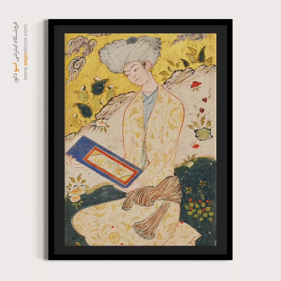 جوان در منظره سنگی – تابلو نقاشی ایرانی