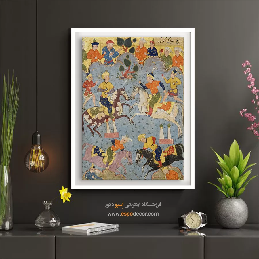در ظرافت خطوط و درخشش رنگها، روایت هزارساله هنر مینیاتور و نگارگری ایرانی زنده میشود. این تابلو نقاشی ایرانی، یادگاری فاخر از میراث فرهنگی ایران برای خانهای آراسته و روحنواز است.
