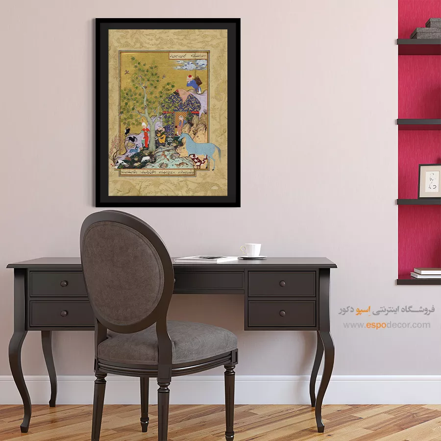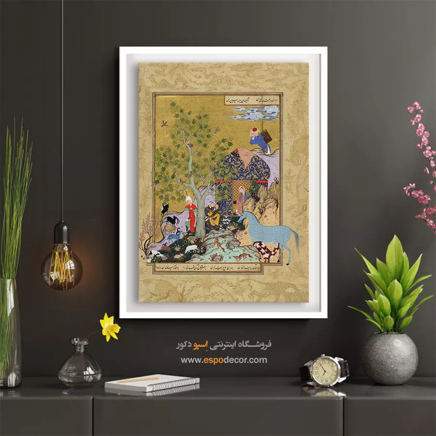 در ظرافت خطوط و درخشش رنگها، روایت هزارساله هنر مینیاتور و نگارگری ایرانی زنده میشود. این تابلو نقاشی ایرانی، یادگاری فاخر از میراث فرهنگی ایران برای خانهای آراسته و روحنواز است.