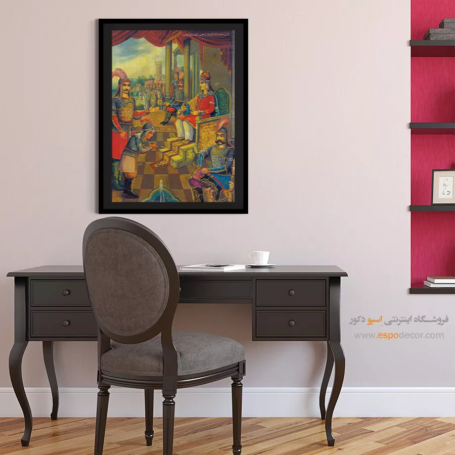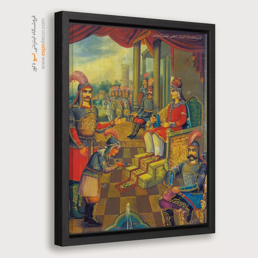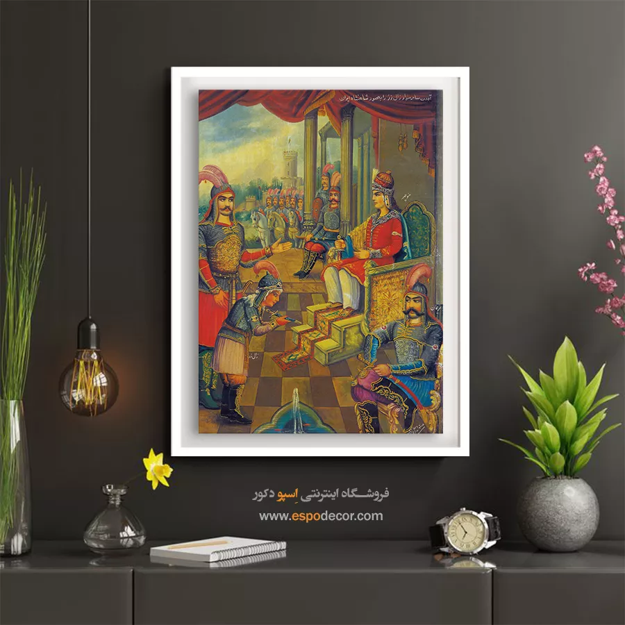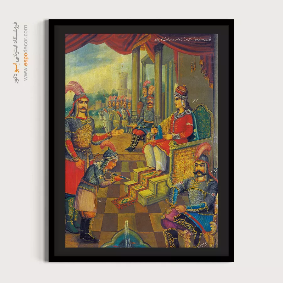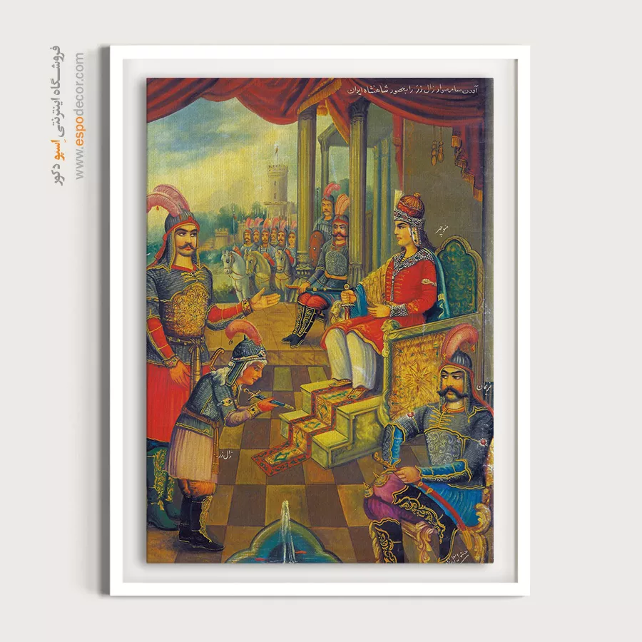 آوردن سام سوار زال زر را بحضور شاهنشاه ایران – تابلو نقاشی ایرانی