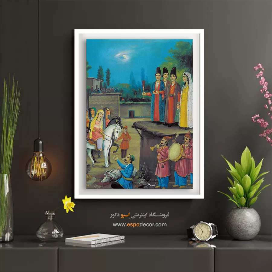 در ظرافت خطوط و درخشش رنگها، روایت هزارساله هنر مینیاتور و نگارگری ایرانی زنده میشود. این تابلو نقاشی ایرانی، یادگاری فاخر از میراث فرهنگی ایران برای خانهای آراسته و روحنواز است.