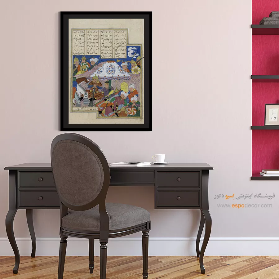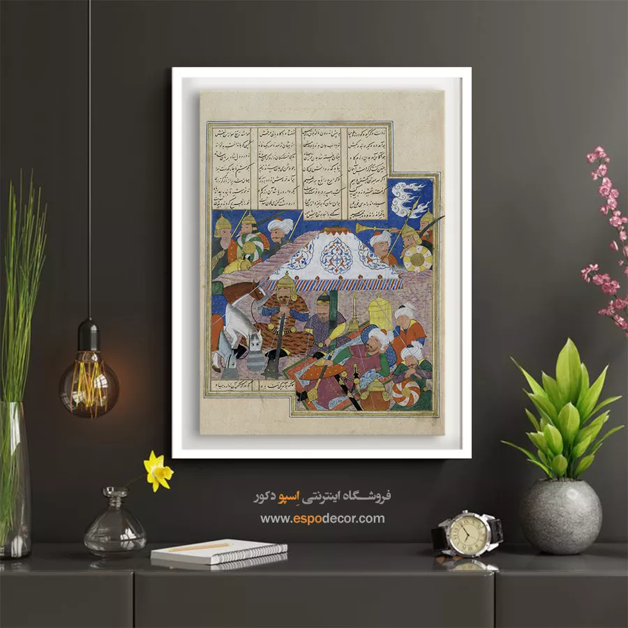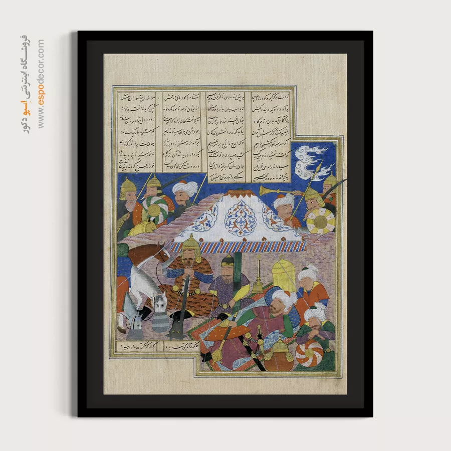 در ظرافت خطوط و درخشش رنگها، روایت هزارساله هنر مینیاتور و نگارگری ایرانی زنده میشود. این تابلو نقاشی ایرانی، یادگاری فاخر از میراث فرهنگی ایران برای خانهای آراسته و روحنواز است.