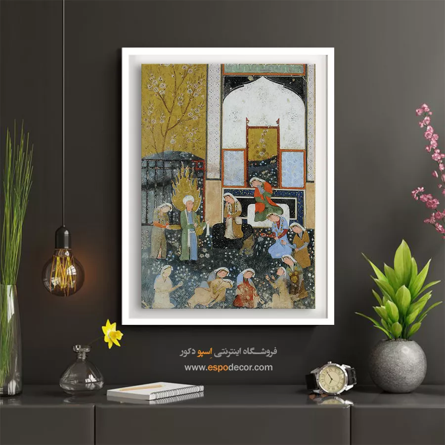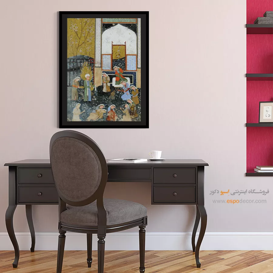در ظرافت خطوط و درخشش رنگها، روایت هزارساله هنر مینیاتور و نگارگری ایرانی زنده میشود. این تابلو نقاشی ایرانی، یادگاری فاخر از میراث فرهنگی ایران برای خانهای آراسته و روحنواز است.