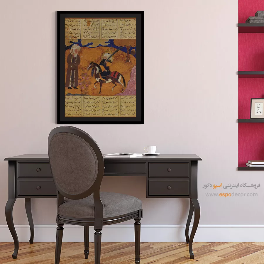 در ظرافت خطوط و درخشش رنگها، روایت هزارساله هنر مینیاتور و نگارگری ایرانی زنده میشود. این تابلو نقاشی ایرانی، یادگاری فاخر از میراث فرهنگی ایران برای خانهای آراسته و روحنواز است.