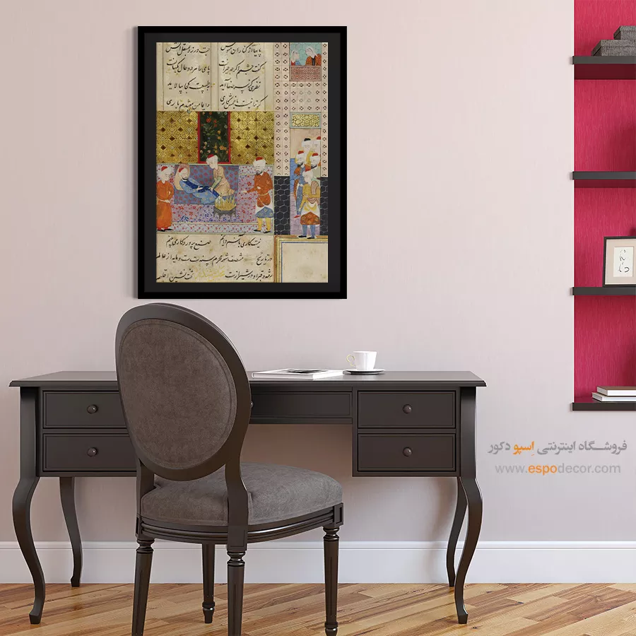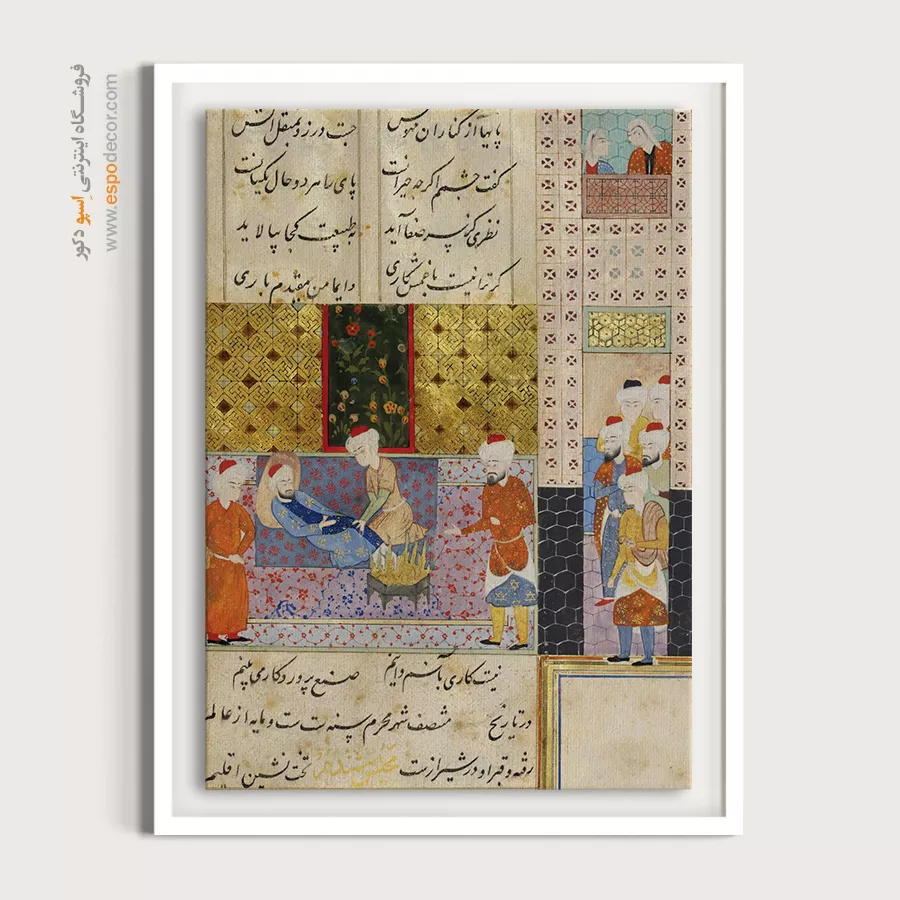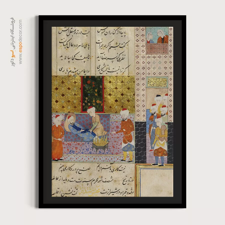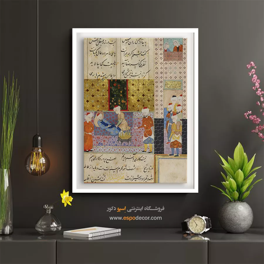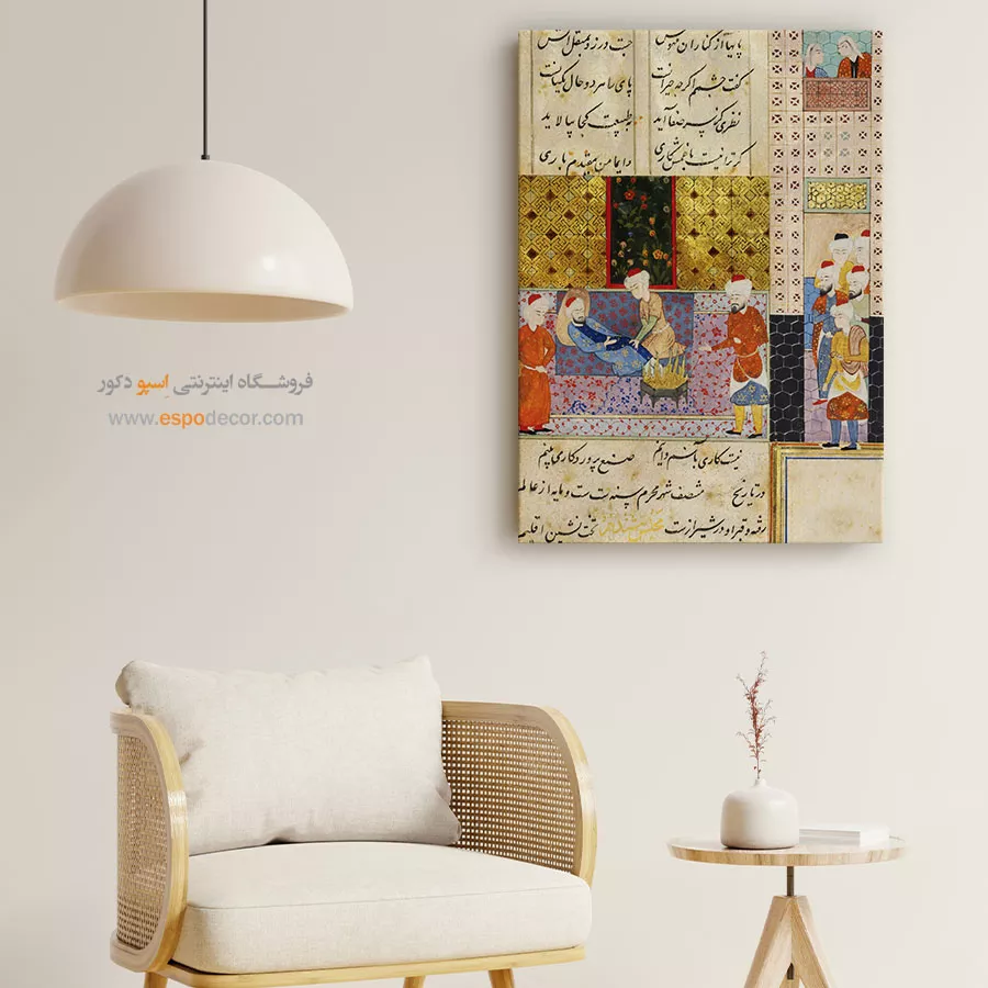 در ظرافت خطوط و درخشش رنگ‌ها، روایت هزارساله هنر مینیاتور و نگارگری ایرانی زنده می‌شود. این تابلو نقاشی ایرانی، یادگاری فاخر از میراث فرهنگی ایران برای خانه‌ای آراسته و روح‌نواز است.