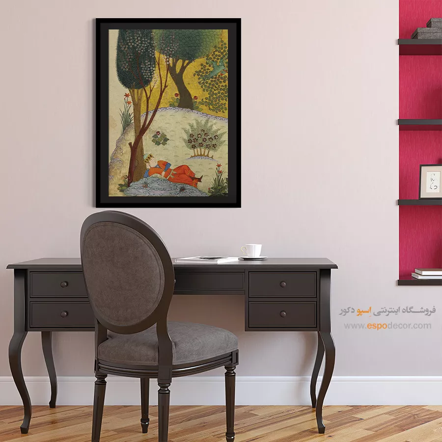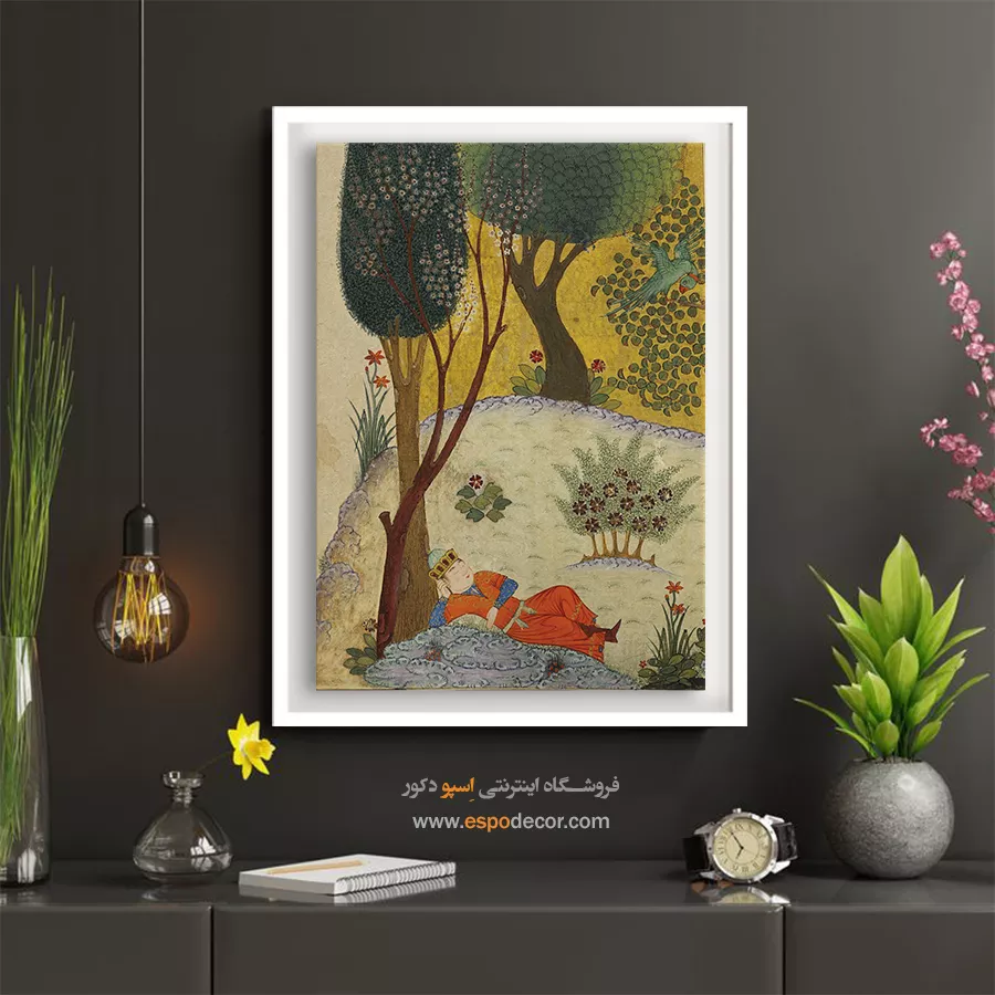 در ظرافت خطوط و درخشش رنگها، روایت هزارساله هنر مینیاتور و نگارگری ایرانی زنده میشود. این تابلو نقاشی ایرانی، یادگاری فاخر از میراث فرهنگی ایران برای خانهای آراسته و روحنواز است.