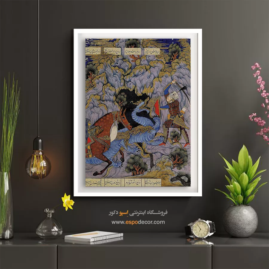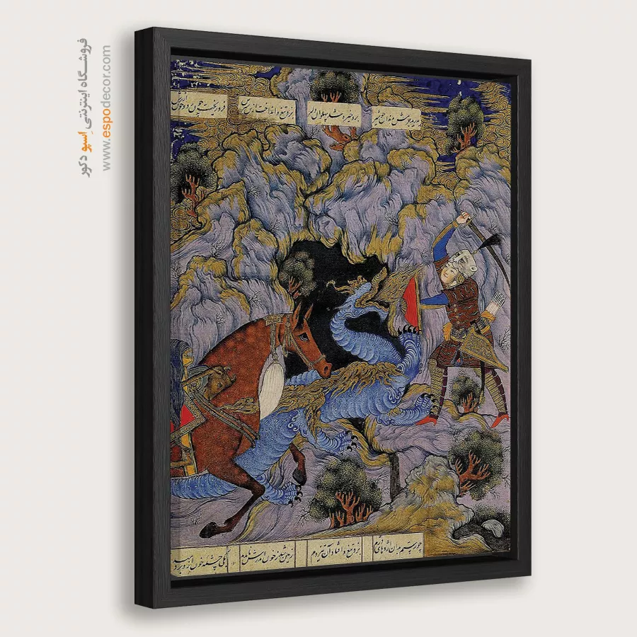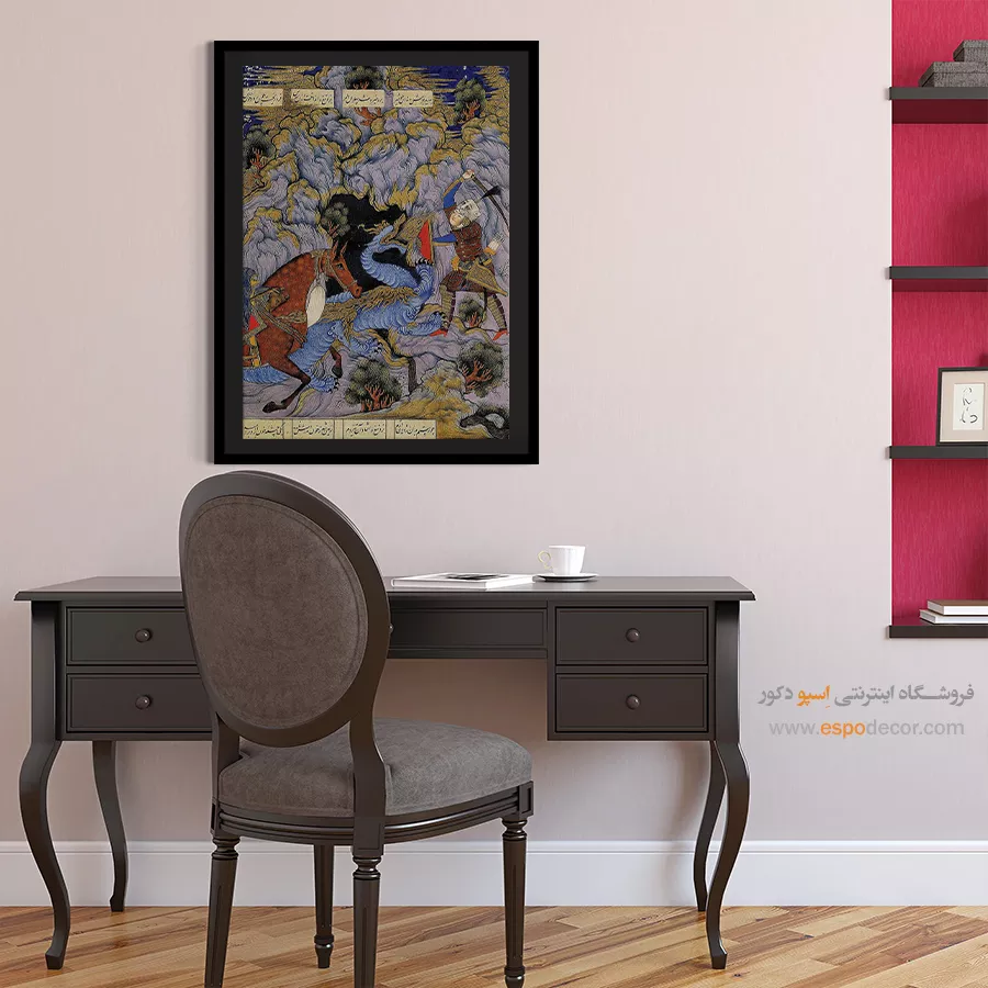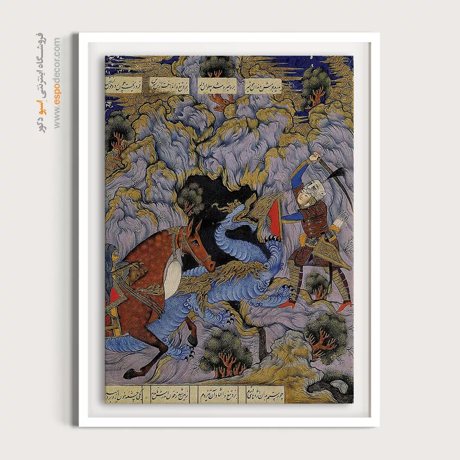 خوان سوم، جنگ رستم با اژدها – تابلو نقاشی ایرانی