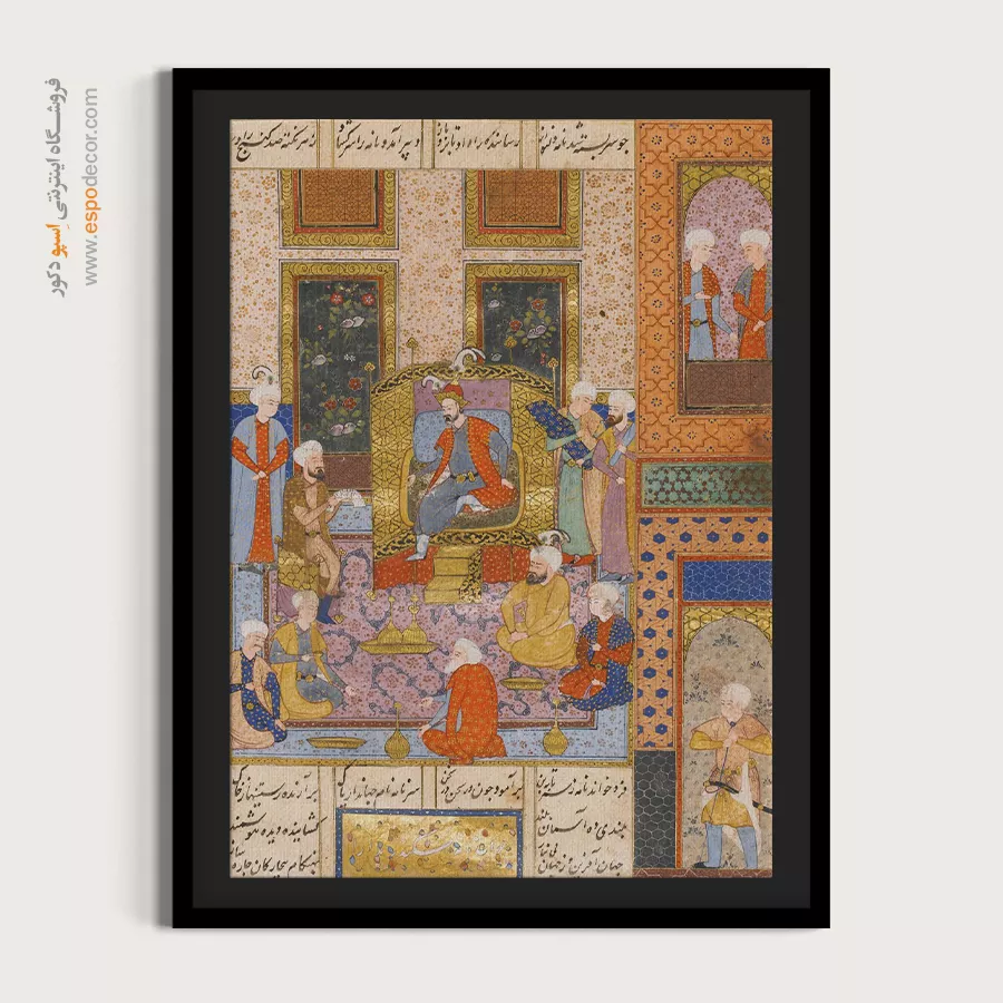 در ظرافت خطوط و درخشش رنگ‌ها، روایت هزارساله هنر مینیاتور و نگارگری ایرانی زنده می‌شود. این تابلو نقاشی ایرانی، یادگاری فاخر از میراث فرهنگی ایران برای خانه‌ای آراسته و روح‌نواز است.