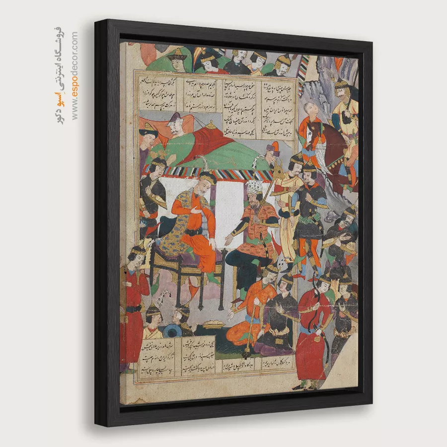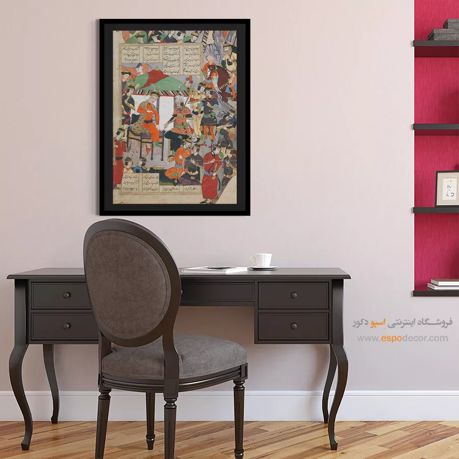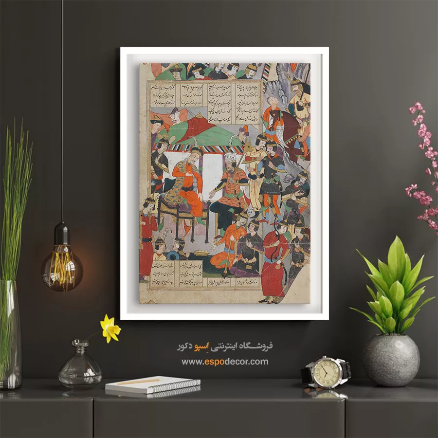 در ظرافت خطوط و درخشش رنگ‌ها، روایت هزارساله هنر مینیاتور و نگارگری ایرانی زنده می‌شود. این تابلو نقاشی ایرانی، یادگاری فاخر از میراث فرهنگی ایران برای خانه‌ای آراسته و روح‌نواز است.