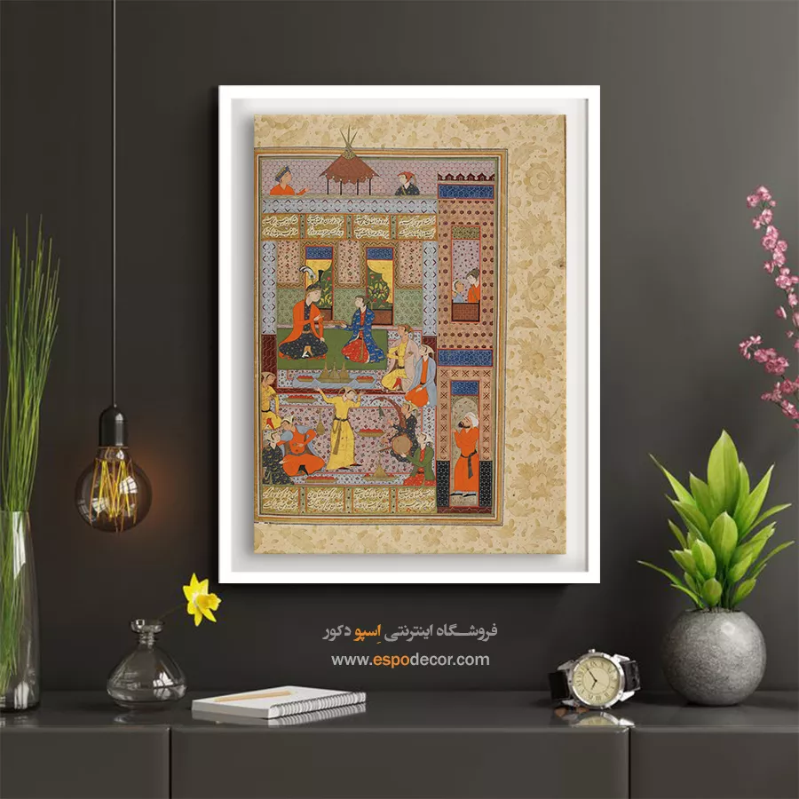 در ظرافت خطوط و درخشش رنگها، روایت هزارساله هنر مینیاتور و نگارگری ایرانی زنده میشود. این تابلو نقاشی ایرانی، یادگاری فاخر از میراث فرهنگی ایران برای خانهای آراسته و روحنواز است.