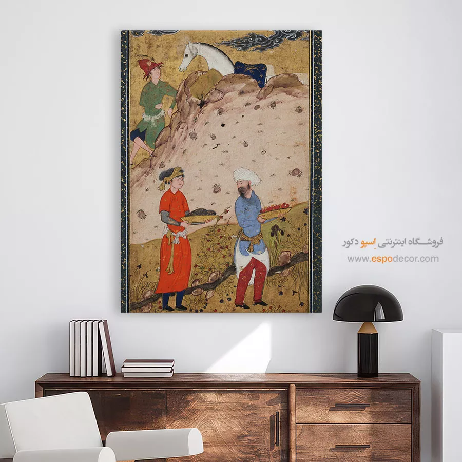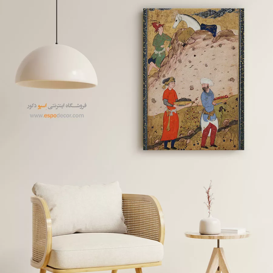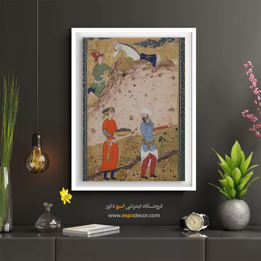 در ظرافت خطوط و درخشش رنگها، روایت هزارساله هنر مینیاتور و نگارگری ایرانی زنده میشود. این تابلو نقاشی ایرانی، یادگاری فاخر از میراث فرهنگی ایران برای خانهای آراسته و روحنواز است.