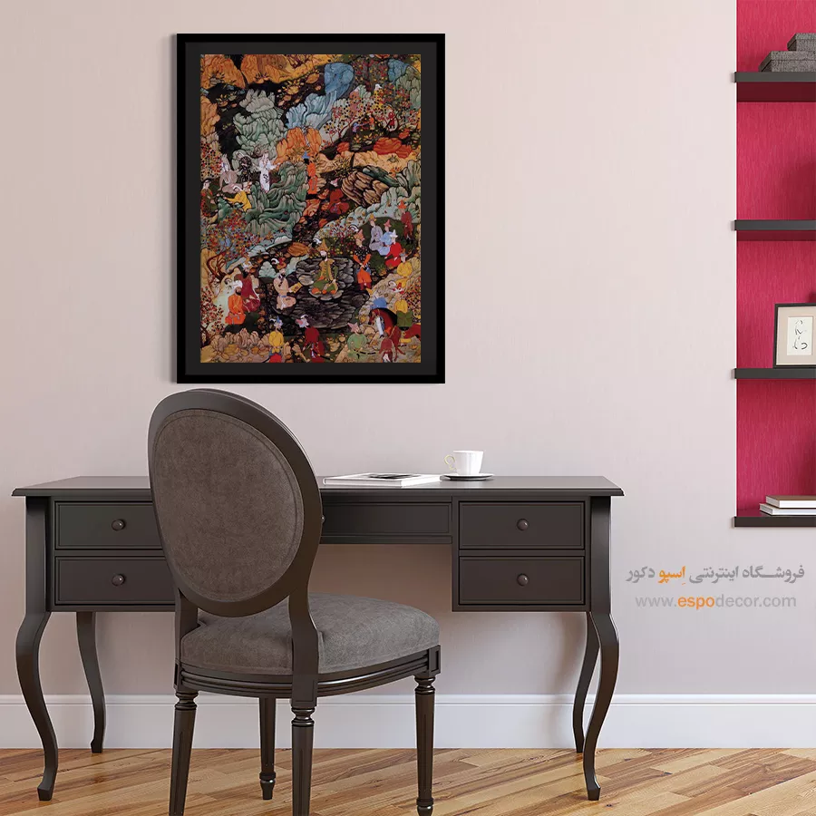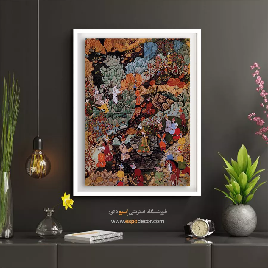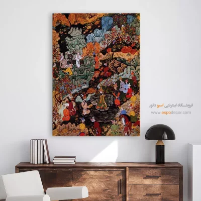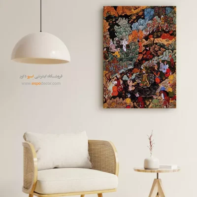 در ظرافت خطوط و درخشش رنگها، روایت هزارساله هنر مینیاتور و نگارگری ایرانی زنده میشود. این تابلو نقاشی ایرانی، یادگاری فاخر از میراث فرهنگی ایران برای خانهای آراسته و روحنواز است.