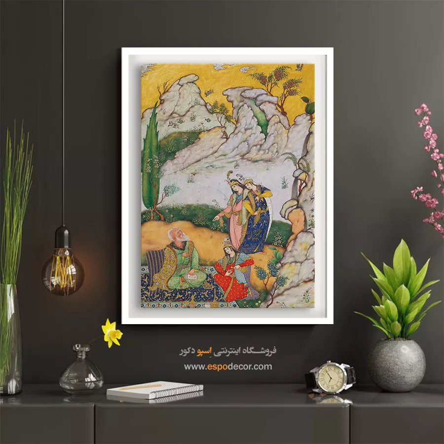 در ظرافت خطوط و درخشش رنگ‌ها، روایت هزارساله هنر مینیاتور و نگارگری ایرانی زنده می‌شود. این تابلو نقاشی ایرانی، یادگاری فاخر از میراث فرهنگی ایران برای خانه‌ای آراسته و روح‌نواز است.