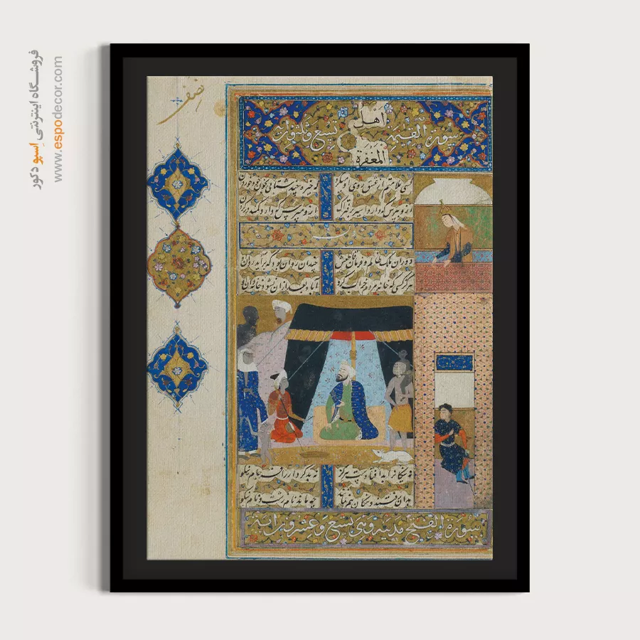 در ظرافت خطوط و درخشش رنگها، روایت هزارساله هنر مینیاتور و نگارگری ایرانی زنده میشود. این تابلو نقاشی ایرانی، یادگاری فاخر از میراث فرهنگی ایران برای خانهای آراسته و روحنواز است.