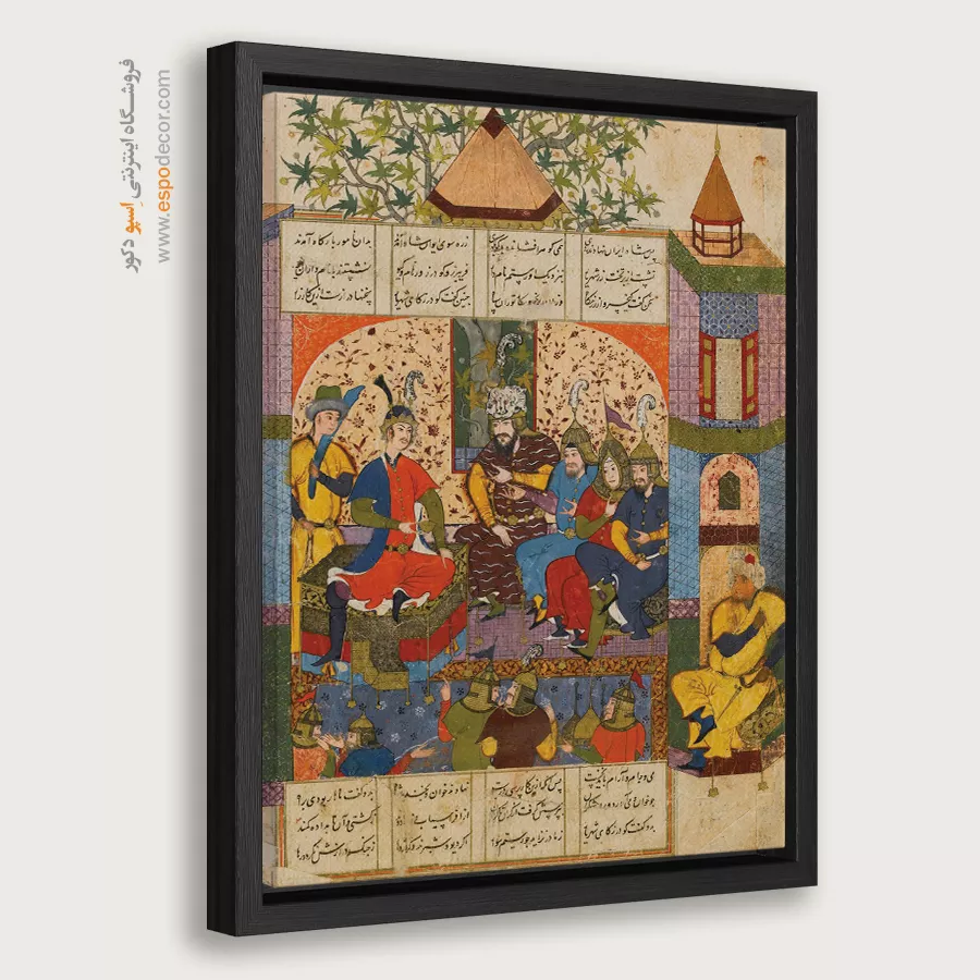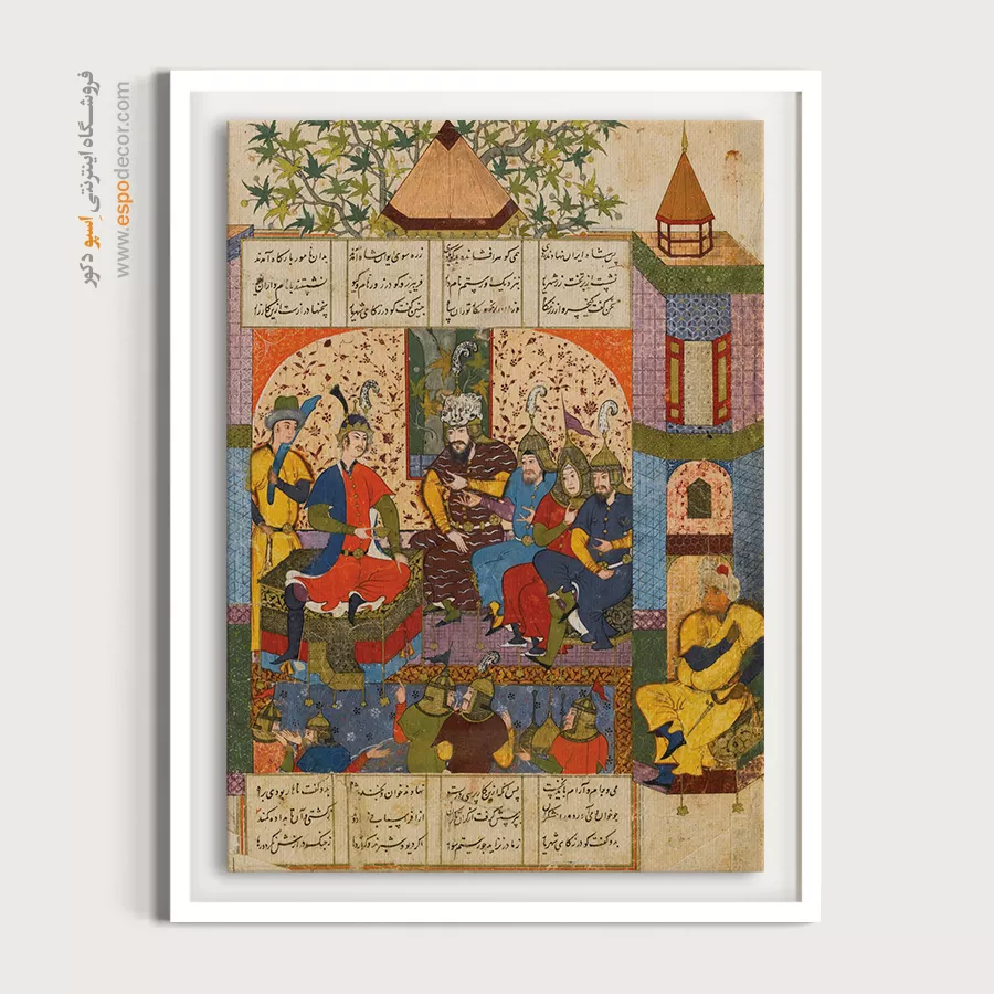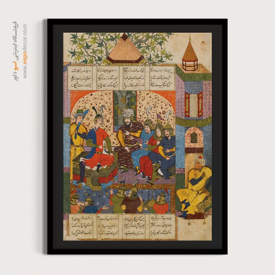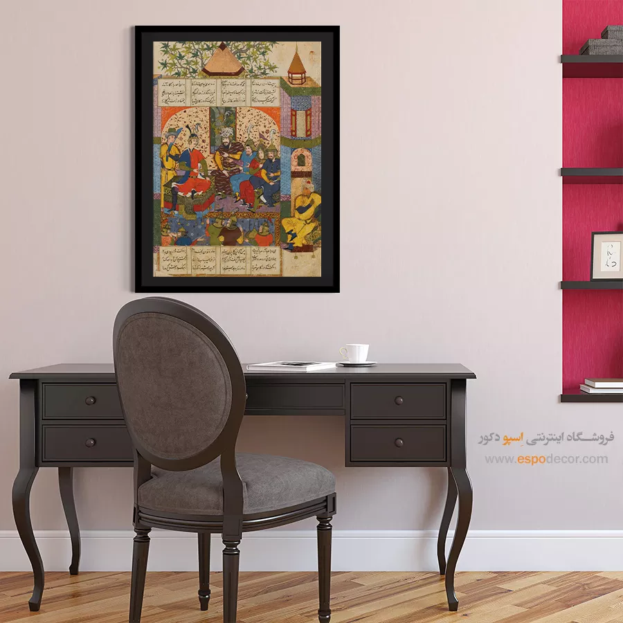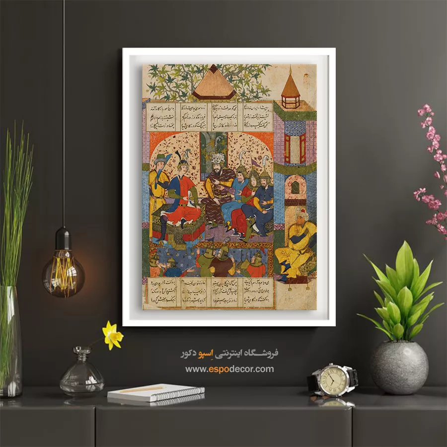 در ظرافت خطوط و درخشش رنگها، روایت هزارساله هنر مینیاتور و نگارگری ایرانی زنده میشود. این تابلو نقاشی ایرانی، یادگاری فاخر از میراث فرهنگی ایران برای خانهای آراسته و روحنواز است.