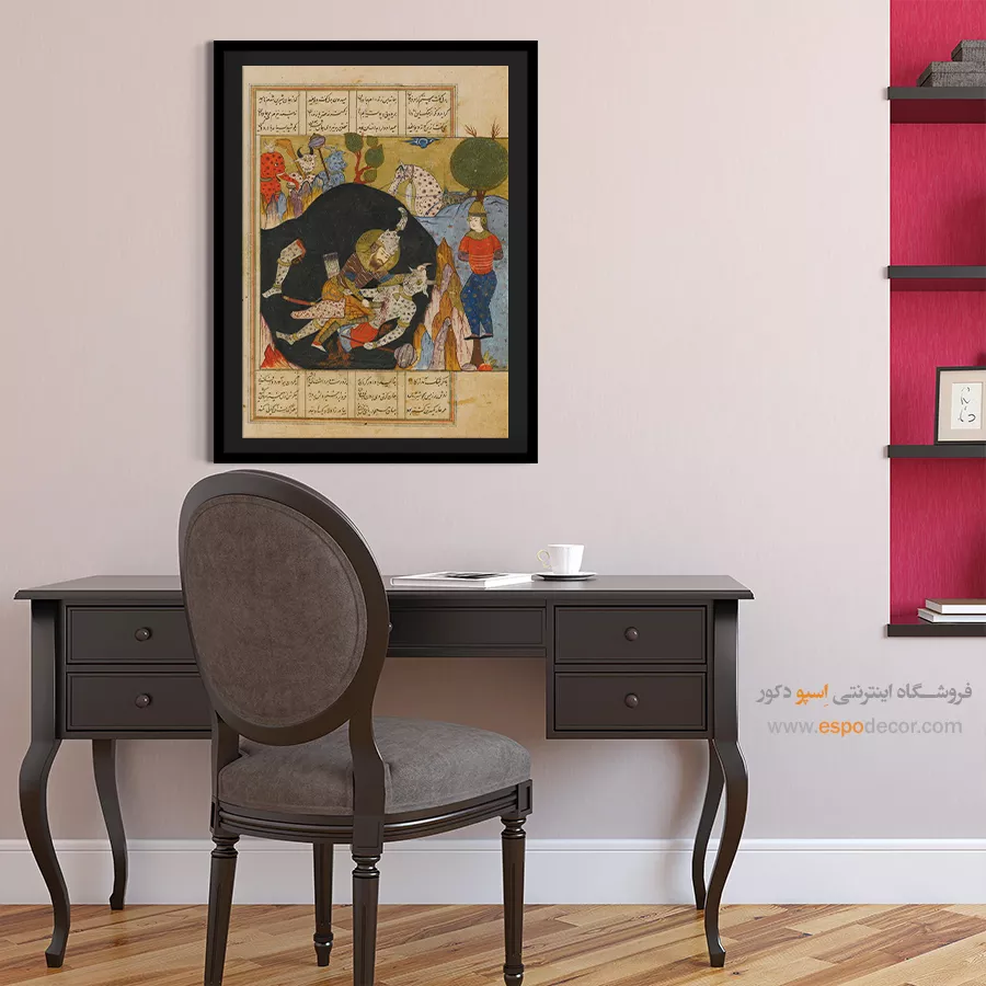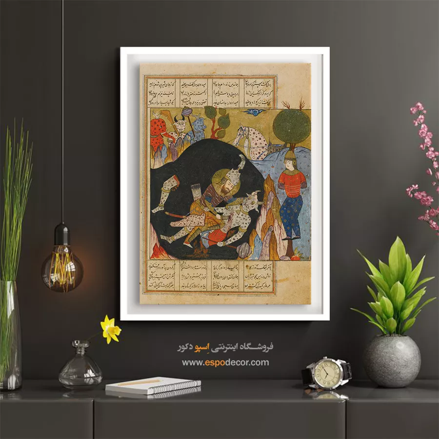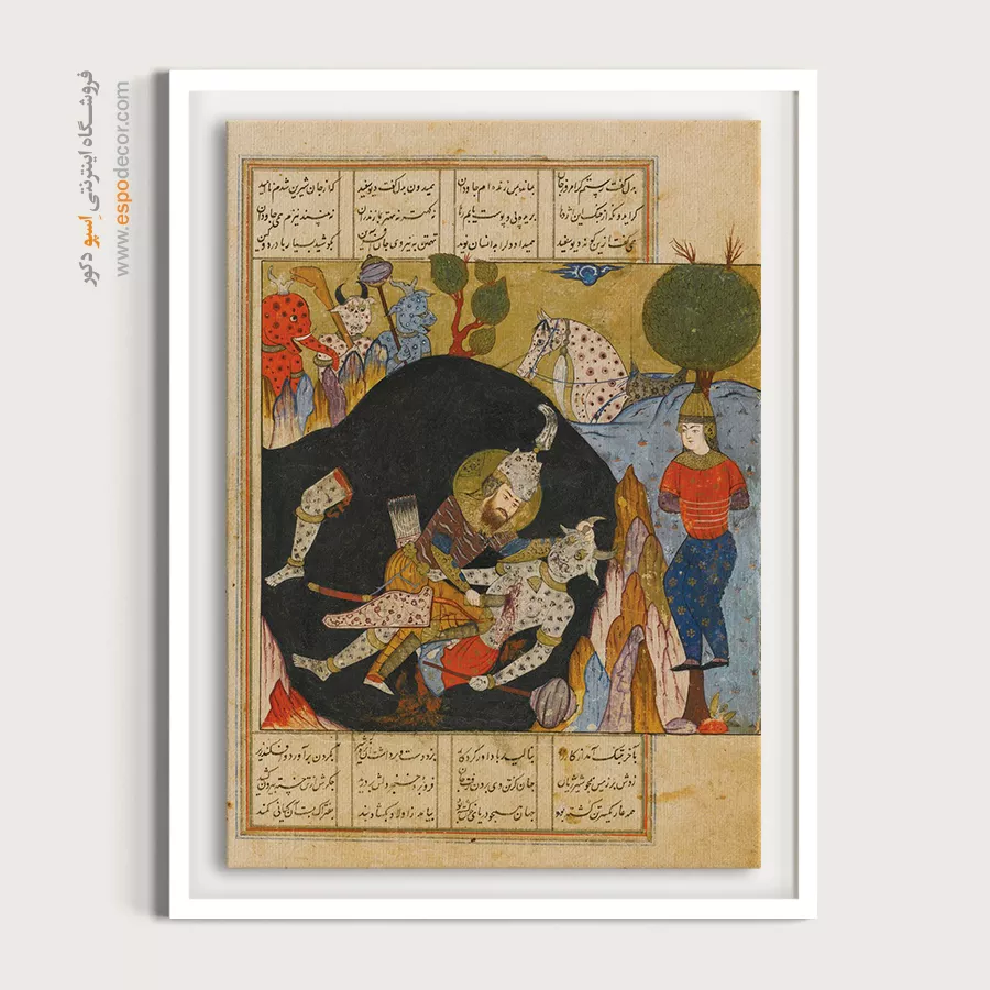 رستم در حال کشتن دیو سفید – تابلو نقاشی ایرانی