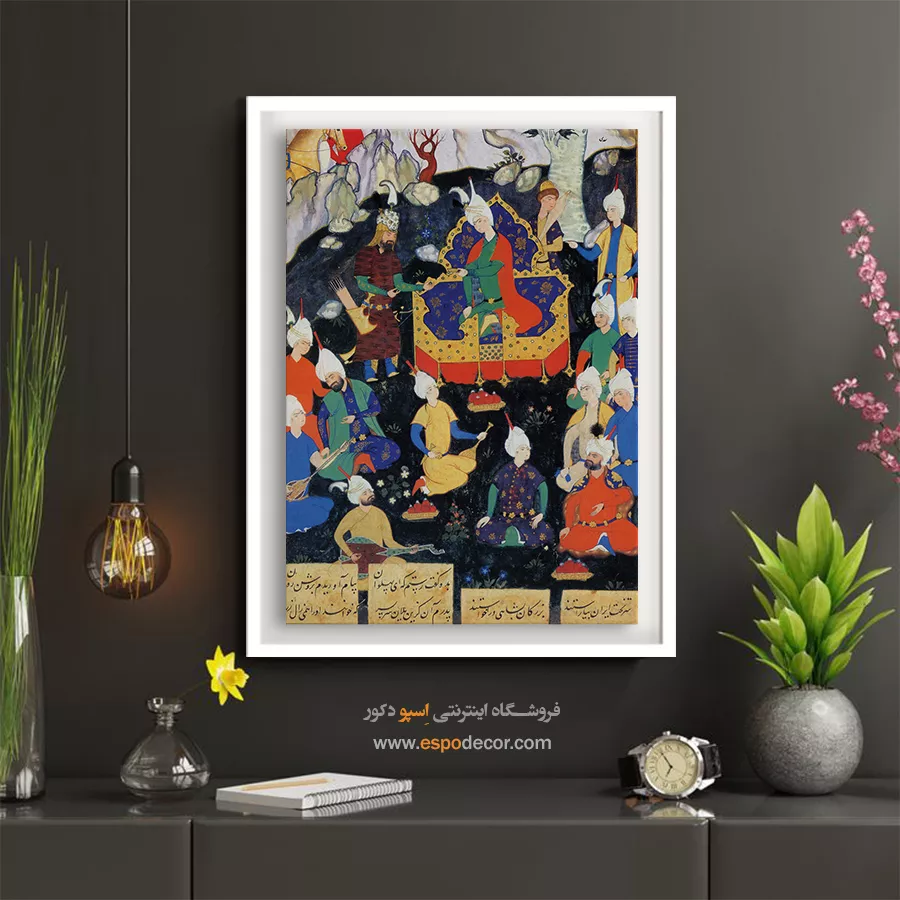 در ظرافت خطوط و درخشش رنگ‌ها، روایت هزارساله هنر مینیاتور و نگارگری ایرانی زنده می‌شود. این تابلو نقاشی ایرانی، یادگاری فاخر از میراث فرهنگی ایران برای خانه‌ای آراسته و روح‌نواز است.