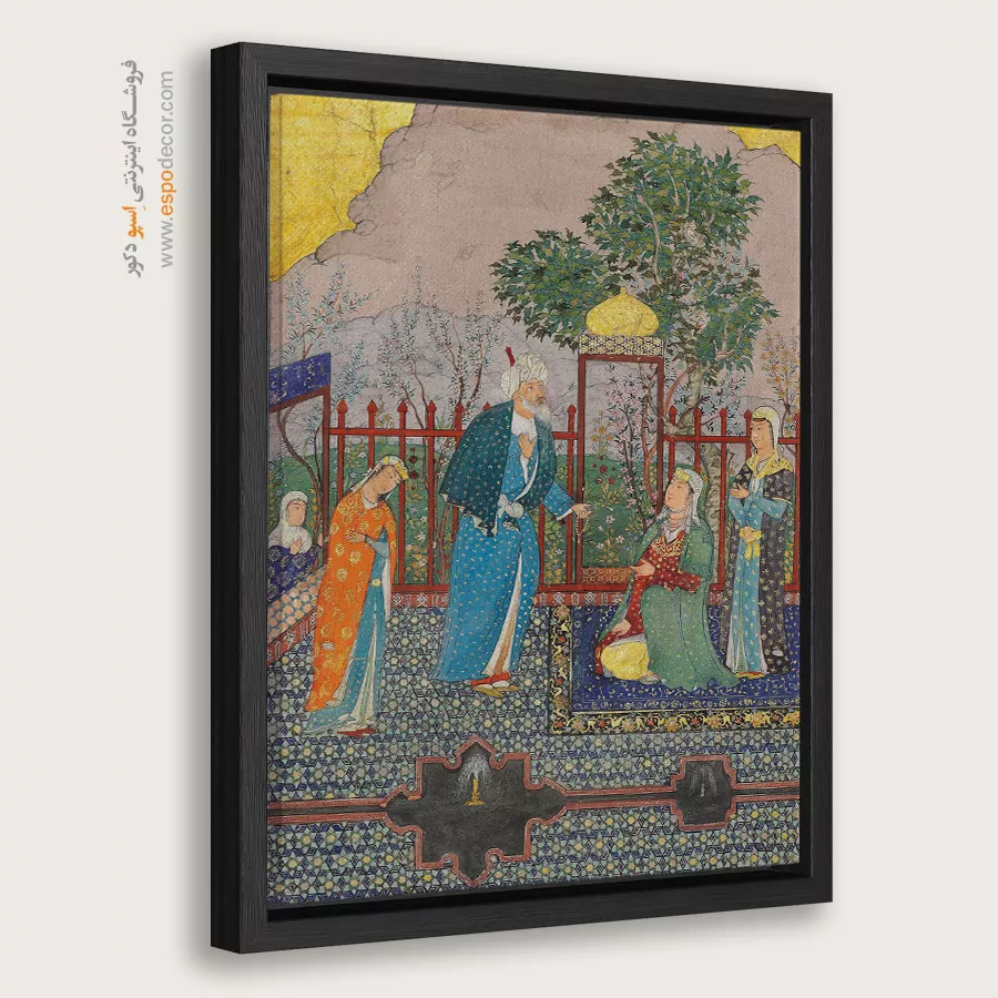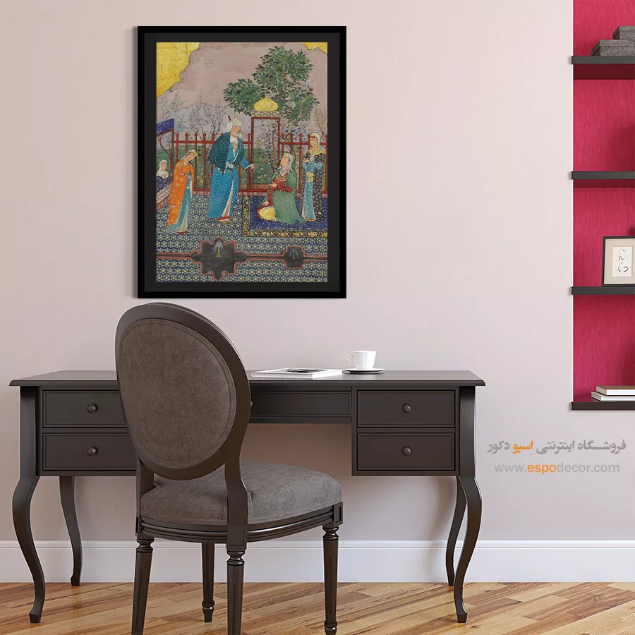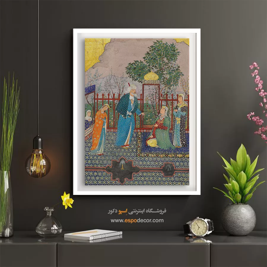 در ظرافت خطوط و درخشش رنگها، روایت هزارساله هنر مینیاتور و نگارگری ایرانی زنده میشود. این تابلو نقاشی ایرانی، یادگاری فاخر از میراث فرهنگی ایران برای خانهای آراسته و روحنواز است.