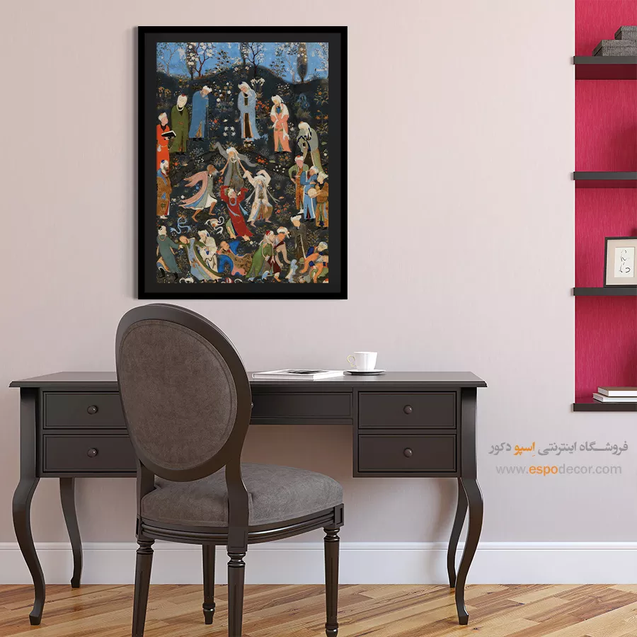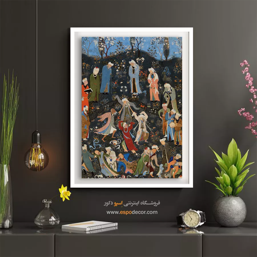 در ظرافت خطوط و درخشش رنگ‌ها، روایت هزارساله هنر مینیاتور و نگارگری ایرانی زنده می‌شود. این تابلو نقاشی ایرانی، یادگاری فاخر از میراث فرهنگی ایران برای خانه‌ای آراسته و روح‌نواز است.