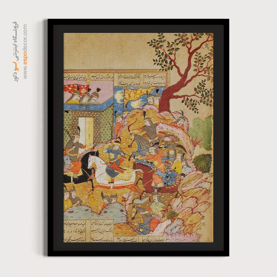 در ظرافت خطوط و درخشش رنگها، روایت هزارساله هنر مینیاتور و نگارگری ایرانی زنده میشود. این تابلو نقاشی ایرانی، یادگاری فاخر از میراث فرهنگی ایران برای خانهای آراسته و روحنواز است.