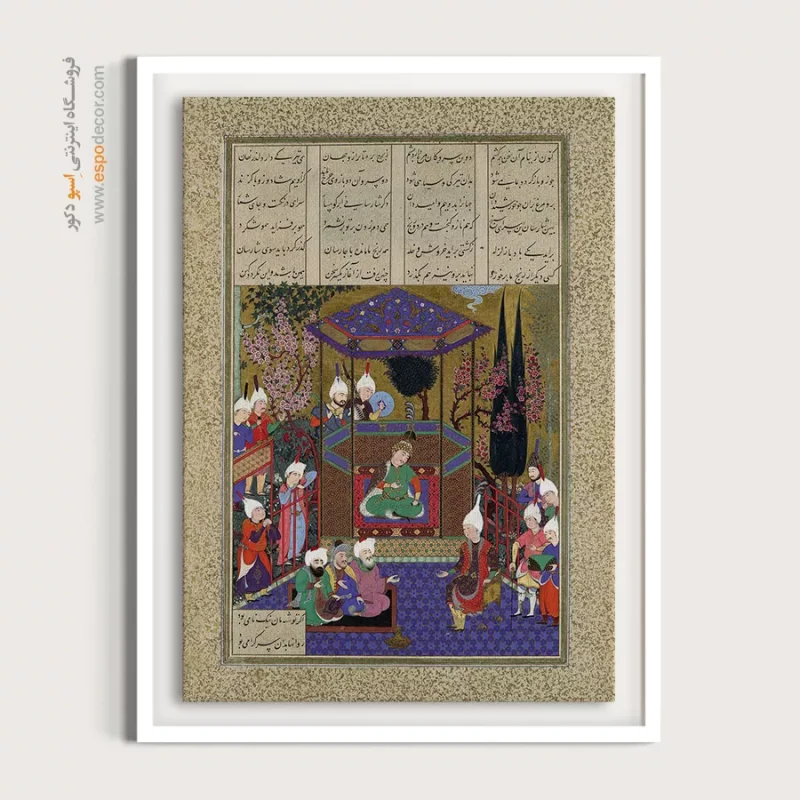 در ظرافت خطوط و درخشش رنگها، روایت هزارساله هنر مینیاتور و نگارگری ایرانی زنده میشود. این تابلو نقاشی ایرانی، یادگاری فاخر از میراث فرهنگی ایران برای خانهای آراسته و روحنواز است.