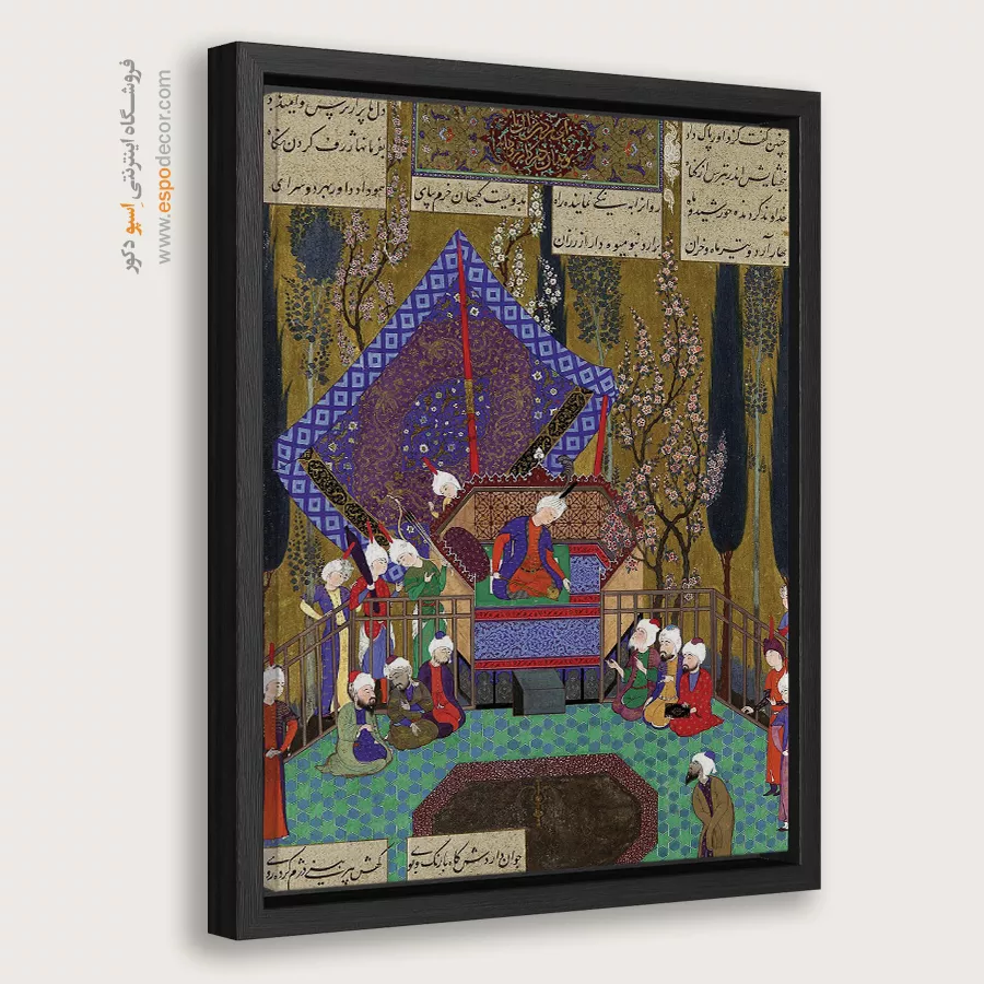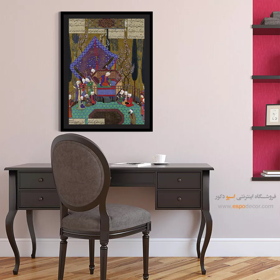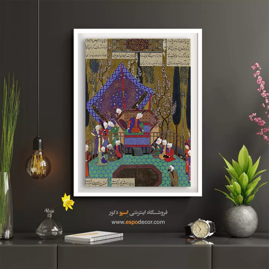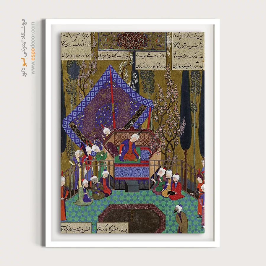 در ظرافت خطوط و درخشش رنگها، روایت هزارساله هنر مینیاتور و نگارگری ایرانی زنده میشود. این تابلو نقاشی ایرانی، یادگاری فاخر از میراث فرهنگی ایران برای خانهای آراسته و روحنواز است.