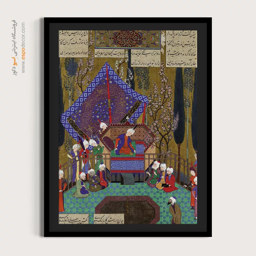 در ظرافت خطوط و درخشش رنگ‌ها، روایت هزارساله هنر مینیاتور و نگارگری ایرانی زنده می‌شود. این تابلو نقاشی ایرانی، یادگاری فاخر از میراث فرهنگی ایران برای خانه‌ای آراسته و روح‌نواز است.