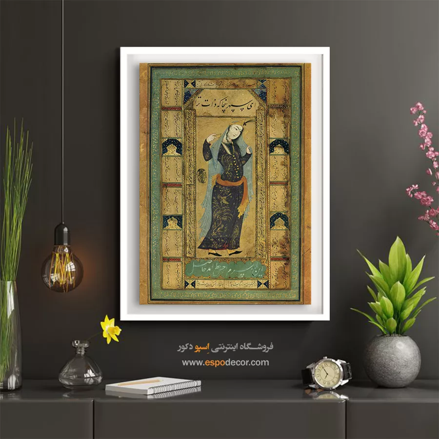 در دل هر نقش و رنگ، قصه‌ای کهن از سرزمین شعر و شکوه نهفته است. این تابلو نقاشی ایرانی برگرفته از اصالت نگارگری و ظرافت مینیاتورهای ماندگار، پلی میان تاریخ و دنیای امروز می‌سازد؛ گویی پنجره‌ای است به جهانی که در آن زیبایی و معنویت هم‌نشین‌اند. هر تابلو، برگ زرینی از نسخ خطی و هنر سنتی ایرانی است؛ سرشار از لطافت خطوط و رنگ‌هایی که به آرامی با چشم و دل سخن می‌گویند. با تماشای آن، می‌توان به عمق فرهنگ ایرانی سفر کرد و لمس کرد که چگونه گذر قرن‌ها نتوانسته فروغ این هنر جاودان را خاموش سازد. این تابلوها بر روی بوم‌های باکیفیت چاپ می‌شوند؛ بافت لطیف بوم و رنگ‌های زنده، جلوه‌ای طبیعی و هنری به اثر می‌بخشند. رنگ‌ها به گونه‌ای انتخاب شده‌اند که درخشان، ماندگار و مقاوم در برابر نور باشند؛ تا سالیان سال، زیبایی اصیل ایرانی در فضای خانه یا محل کارتان بدرخشد. فریم‌های محکم، ساختاری استوار به تابلو می‌بخشند و با طراحی ظریف خود، بر شکوه اثر می‌افزایند. سبک بودن تابلو و امکان نصب آسان، آن را برای هر نوع دکوراسیون مدرن یا کلاسیک مناسب می‌سازد. از اتاق نشیمن تا دفتر کار، این آثار همچون نگینی فاخر بر دیوار خواهند درخشید. هر اثر، فرصتی برای لمس دوباره‌ی هنر نگارگری و مینیاتور ایرانی است؛ هنری که در جزئی‌ترین خطوط، روح شاعرانه ایرانیان را بازمی‌تاباند. این تابلوها نه تنها تزیینی، بلکه یادآور هویت فرهنگی و زیبایی بی‌زمان ایران‌زمین‌اند. اگر به دنبال هدیه‌ای ماندگار یا اثری منحصر به فرد برای فضای زندگی‌تان هستید، این تابلو بوم نگارگری ایرانی انتخابی بی‌همتاست. ترکیب اصالت تاریخی با کیفیت مدرن چاپ، ارزش هنری و زیبایی را در یک قاب جاودانه به شما تقدیم می‌کند.