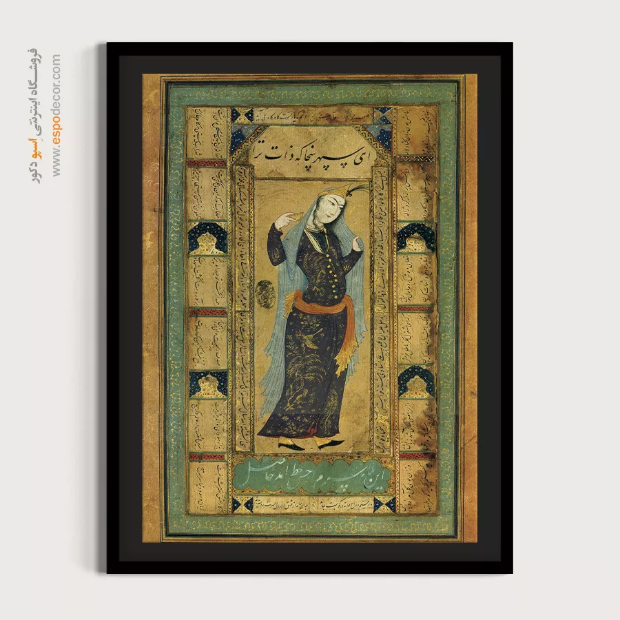 در دل هر نقش و رنگ، قصه‌ای کهن از سرزمین شعر و شکوه نهفته است. این تابلو نقاشی ایرانی برگرفته از اصالت نگارگری و ظرافت مینیاتورهای ماندگار، پلی میان تاریخ و دنیای امروز می‌سازد؛ گویی پنجره‌ای است به جهانی که در آن زیبایی و معنویت هم‌نشین‌اند.هر تابلو، برگ زرینی از نسخ خطی و هنر سنتی ایرانی است؛ سرشار از لطافت خطوط و رنگ‌هایی که به آرامی با چشم و دل سخن می‌گویند. با تماشای آن، می‌توان به عمق فرهنگ ایرانی سفر کرد و لمس کرد که چگونه گذر قرن‌ها نتوانسته فروغ این هنر جاودان را خاموش سازد.این تابلوها بر روی بوم‌های باکیفیت چاپ می‌شوند؛ بافت لطیف بوم و رنگ‌های زنده، جلوه‌ای طبیعی و هنری به اثر می‌بخشند. رنگ‌ها به گونه‌ای انتخاب شده‌اند که درخشان، ماندگار و مقاوم در برابر نور باشند؛ تا سالیان سال، زیبایی اصیل ایرانی در فضای خانه یا محل کارتان بدرخشد.فریم‌های محکم، ساختاری استوار به تابلو می‌بخشند و با طراحی ظریف خود، بر شکوه اثر می‌افزایند. سبک بودن تابلو و امکان نصب آسان، آن را برای هر نوع دکوراسیون مدرن یا کلاسیک مناسب می‌سازد. از اتاق نشیمن تا دفتر کار، این آثار همچون نگینی فاخر بر دیوار خواهند درخشید.هر اثر، فرصتی برای لمس دوباره‌ی هنر نگارگری و مینیاتور ایرانی است؛ هنری که در جزئی‌ترین خطوط، روح شاعرانه ایرانیان را بازمی‌تاباند. این تابلوها نه تنها تزیینی، بلکه یادآور هویت فرهنگی و زیبایی بی‌زمان ایران‌زمین‌اند.اگر به دنبال هدیه‌ای ماندگار یا اثری منحصر به فرد برای فضای زندگی‌تان هستید، این تابلو بوم نگارگری ایرانی انتخابی بی‌همتاست. ترکیب اصالت تاریخی با کیفیت مدرن چاپ، ارزش هنری و زیبایی را در یک قاب جاودانه به شما تقدیم می‌کند.