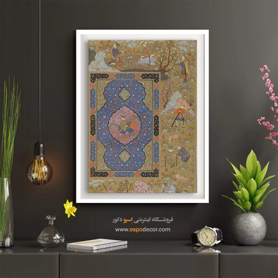 در ظرافت خطوط و درخشش رنگها، روایت هزارساله هنر مینیاتور و نگارگری ایرانی زنده میشود. این تابلو نقاشی ایرانی، یادگاری فاخر از میراث فرهنگی ایران برای خانهای آراسته و روحنواز است.