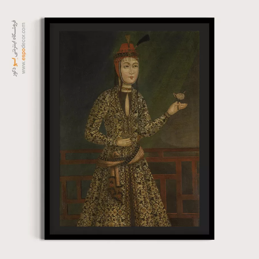 بانوی نجیب زاده با گل رز – تابلو نقاشی ایرانی