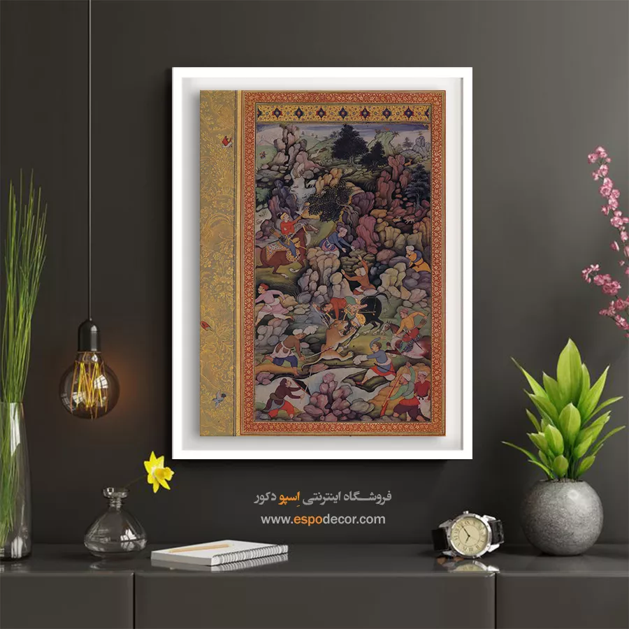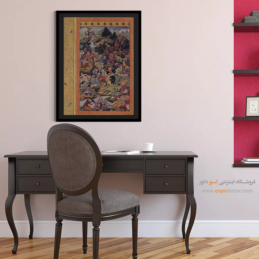 در ظرافت خطوط و درخشش رنگها، روایت هزارساله هنر مینیاتور و نگارگری ایرانی زنده میشود. این تابلو نقاشی ایرانی، یادگاری فاخر از میراث فرهنگی ایران برای خانهای آراسته و روحنواز است.
