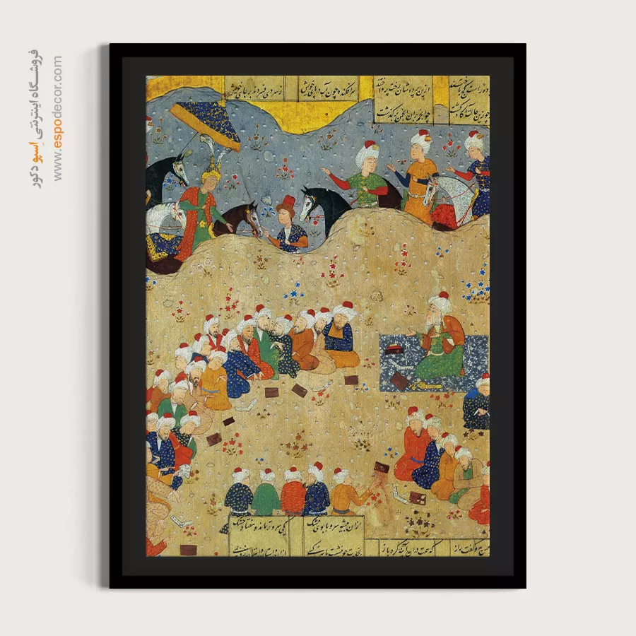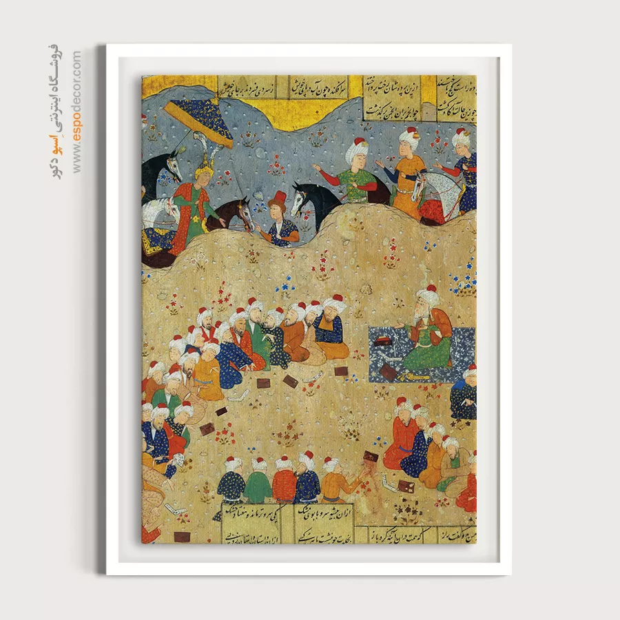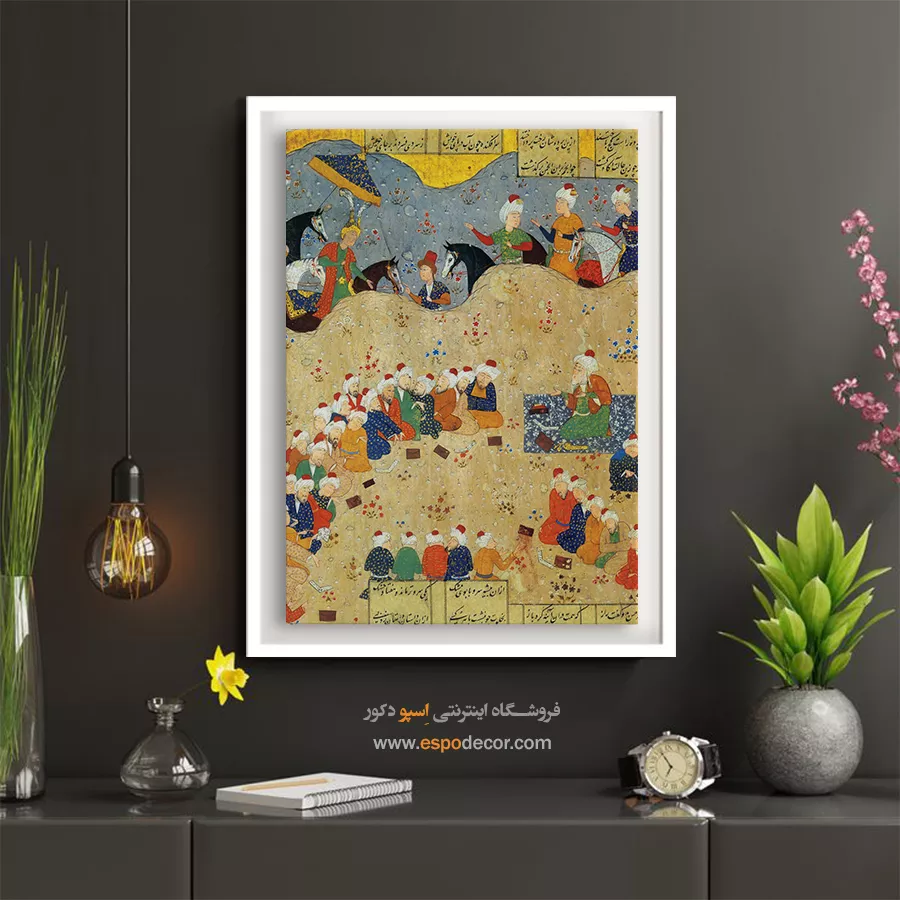 در ظرافت خطوط و درخشش رنگها، روایت هزارساله هنر مینیاتور و نگارگری ایرانی زنده میشود. این تابلو نقاشی ایرانی، یادگاری فاخر از میراث فرهنگی ایران برای خانهای آراسته و روحنواز است.