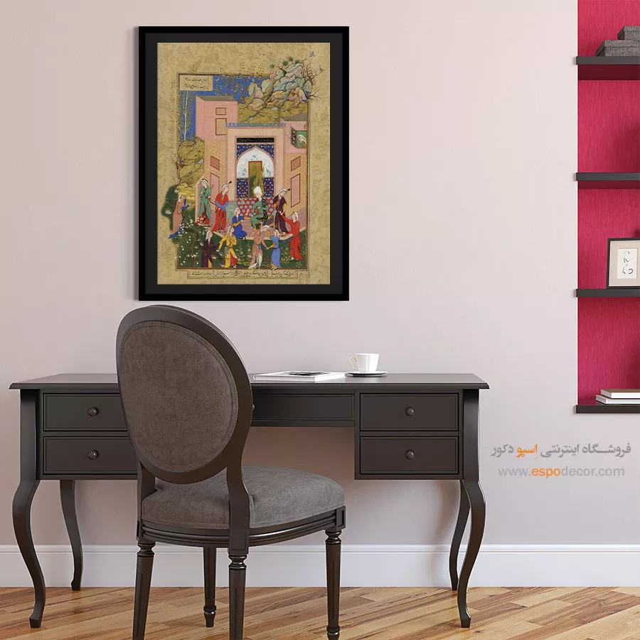 در ظرافت خطوط و درخشش رنگ‌ها، روایت هزارساله هنر مینیاتور و نگارگری ایرانی زنده می‌شود. این تابلو نقاشی ایرانی، یادگاری فاخر از میراث فرهنگی ایران برای خانه‌ای آراسته و روح‌نواز است.