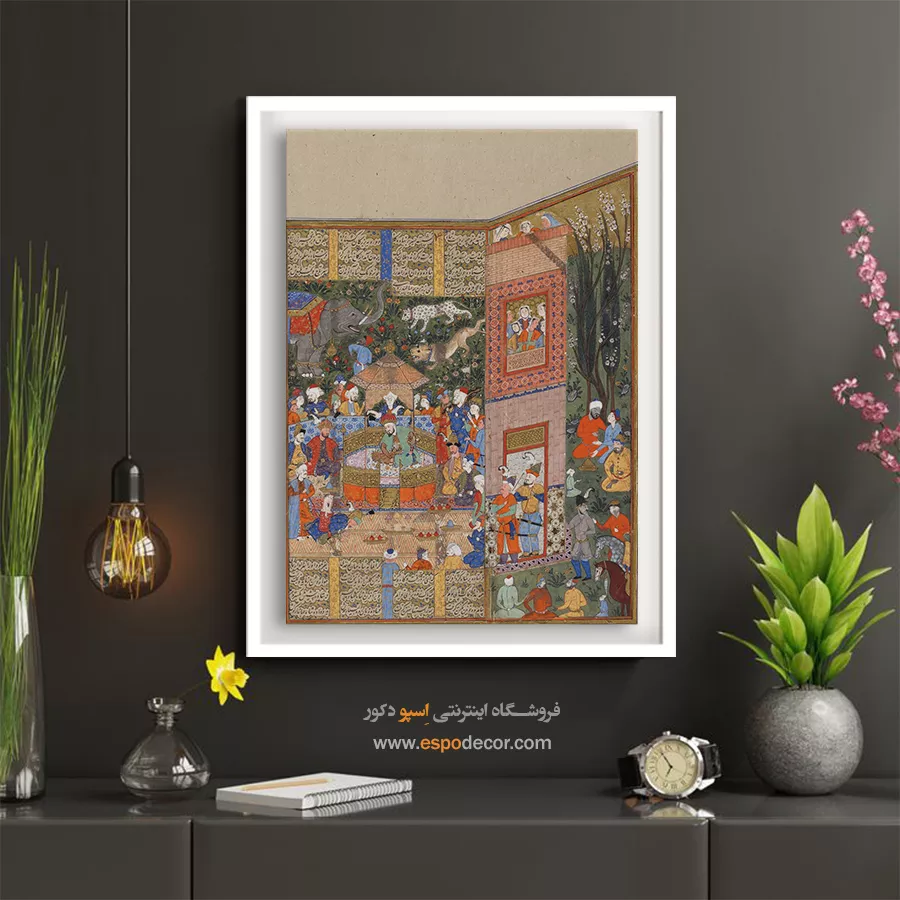 در ظرافت خطوط و درخشش رنگها، روایت هزارساله هنر مینیاتور و نگارگری ایرانی زنده میشود. این تابلو نقاشی ایرانی، یادگاری فاخر از میراث فرهنگی ایران برای خانهای آراسته و روحنواز است.