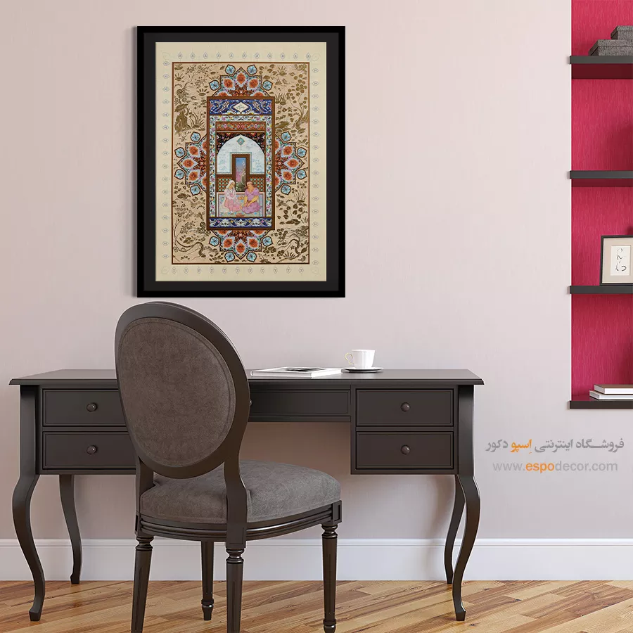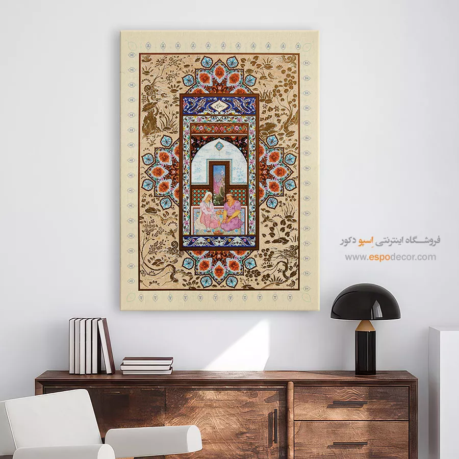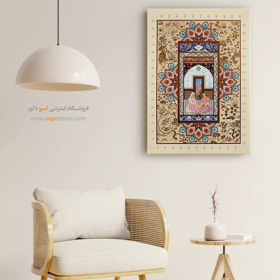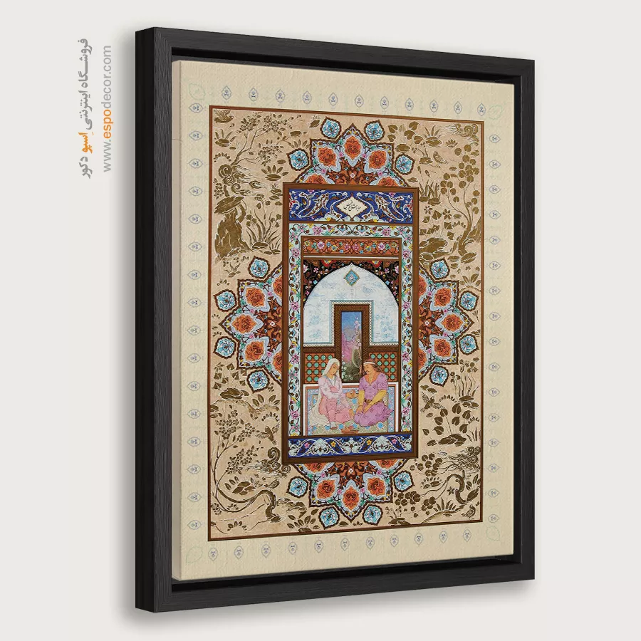 در ظرافت خطوط و درخشش رنگها، روایت هزارساله هنر مینیاتور و نگارگری ایرانی زنده میشود. این تابلو نقاشی ایرانی، یادگاری فاخر از میراث فرهنگی ایران برای خانهای آراسته و روحنواز است.