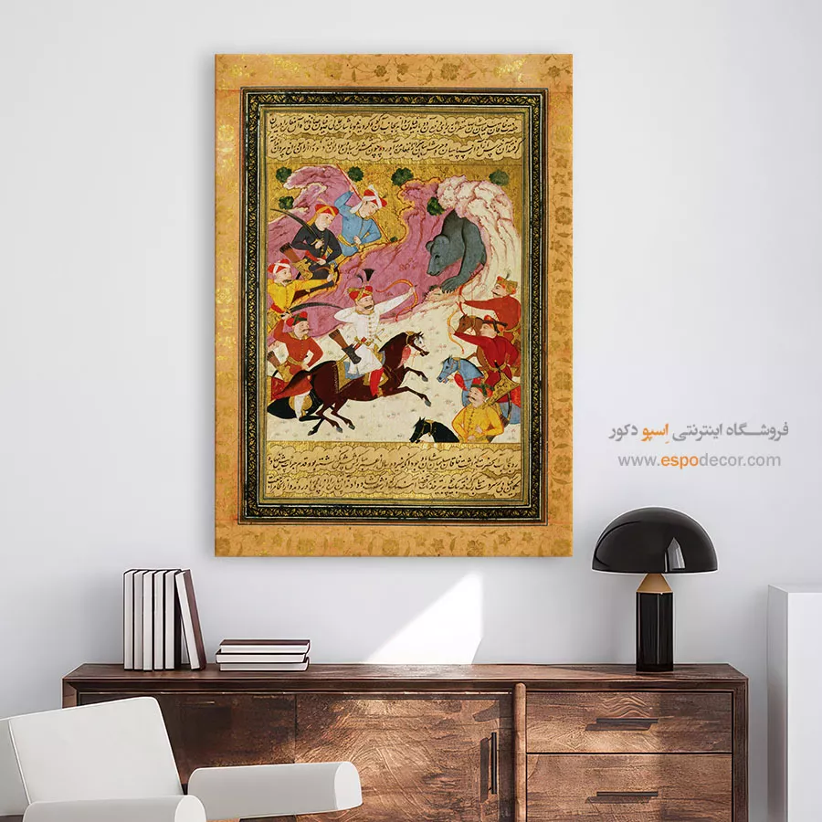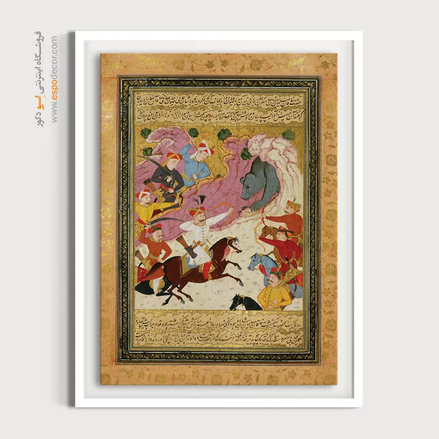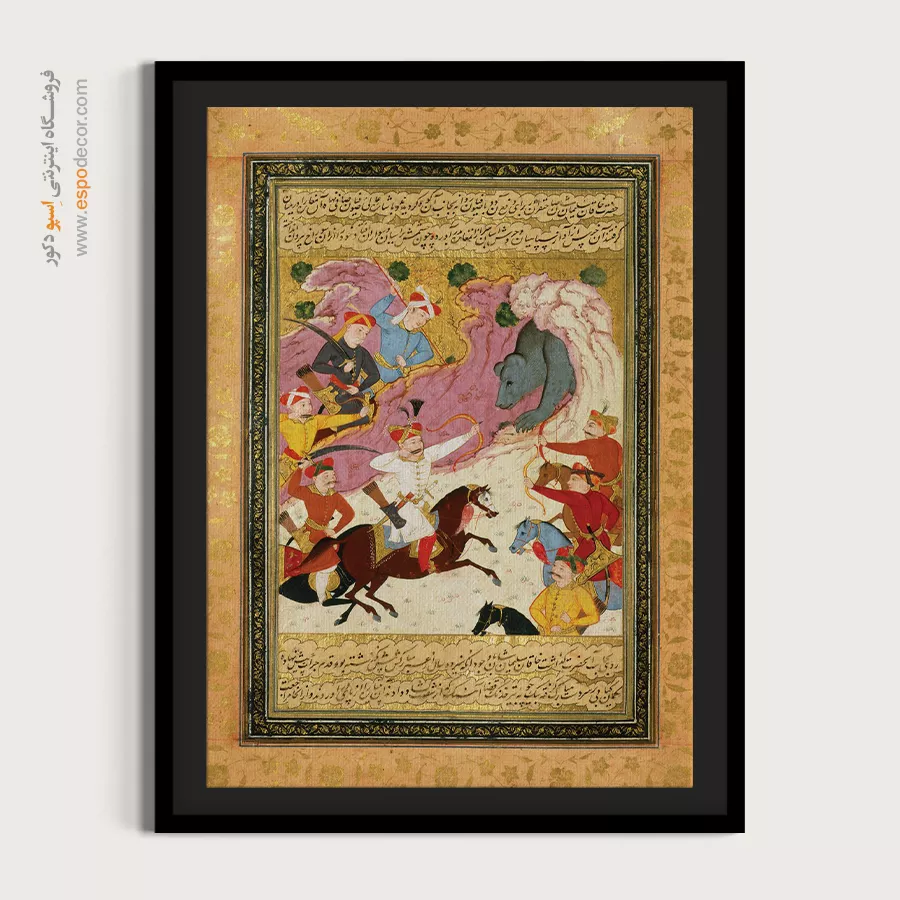 نبرد شاه اسماعیل با خرس – تابلو نقاشی ایرانی