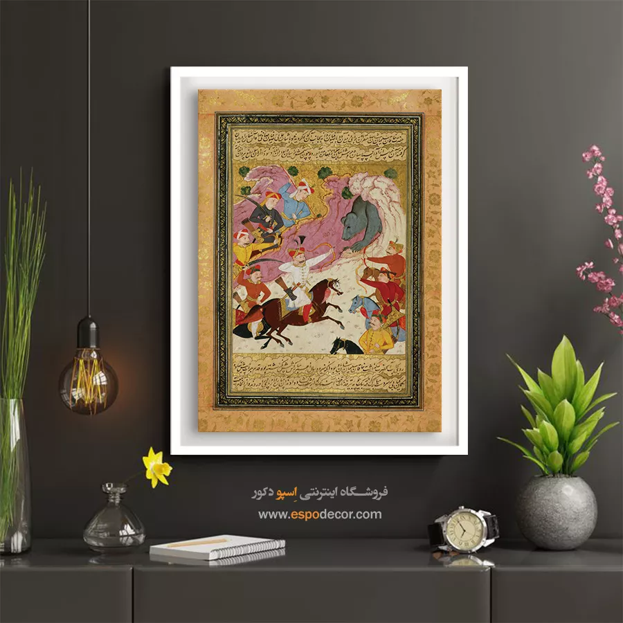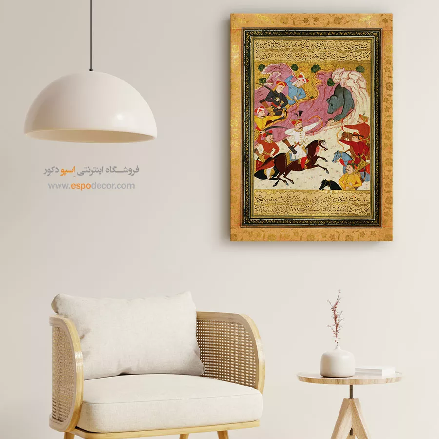 در ظرافت خطوط و درخشش رنگها، روایت هزارساله هنر مینیاتور و نگارگری ایرانی زنده میشود. این تابلو نقاشی ایرانی، یادگاری فاخر از میراث فرهنگی ایران برای خانهای آراسته و روحنواز است.