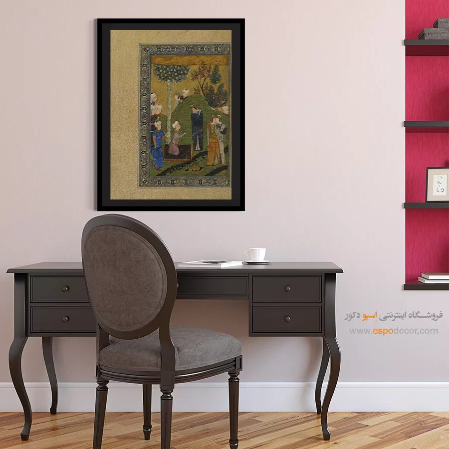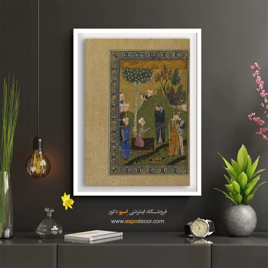در ظرافت خطوط و درخشش رنگ‌ها، روایت هزارساله هنر مینیاتور و نگارگری ایرانی زنده می‌شود. این تابلو نقاشی ایرانی، یادگاری فاخر از میراث فرهنگی ایران برای خانه‌ای آراسته و روح‌نواز است.