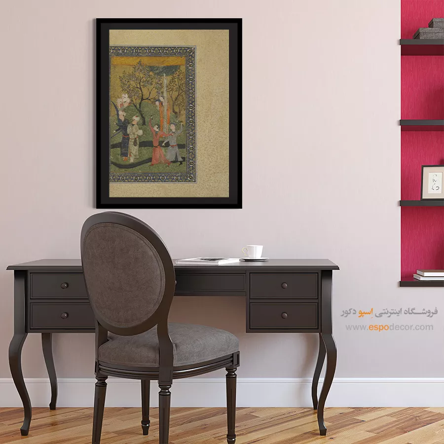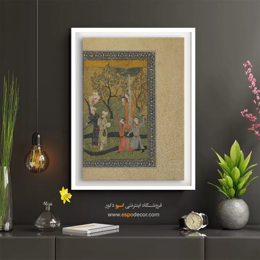 در ظرافت خطوط و درخشش رنگ‌ها، روایت هزارساله هنر مینیاتور و نگارگری ایرانی زنده می‌شود. این تابلو نقاشی ایرانی، یادگاری فاخر از میراث فرهنگی ایران برای خانه‌ای آراسته و روح‌نواز است.