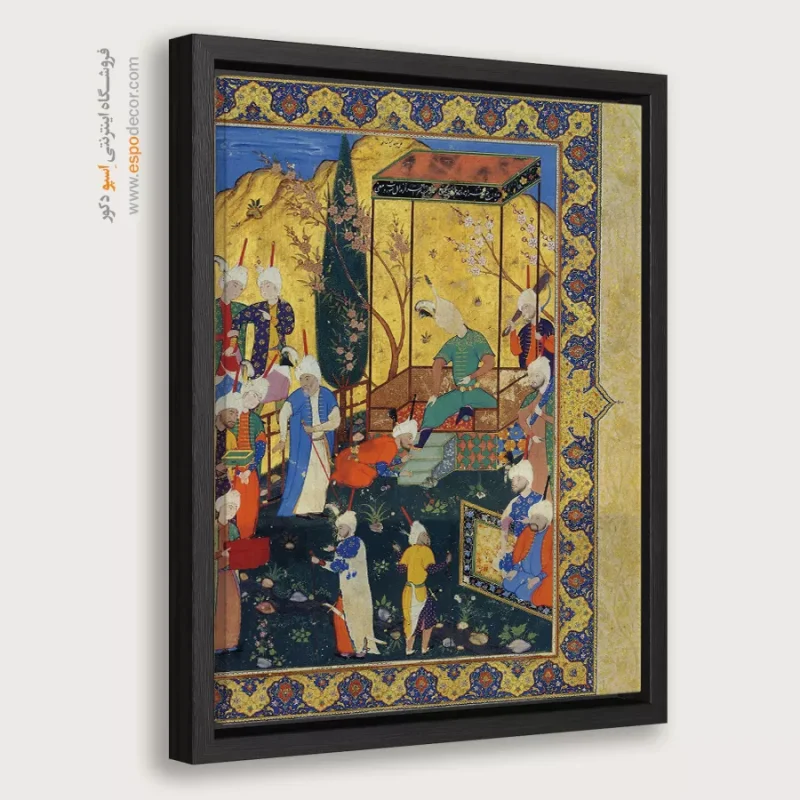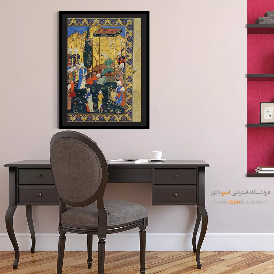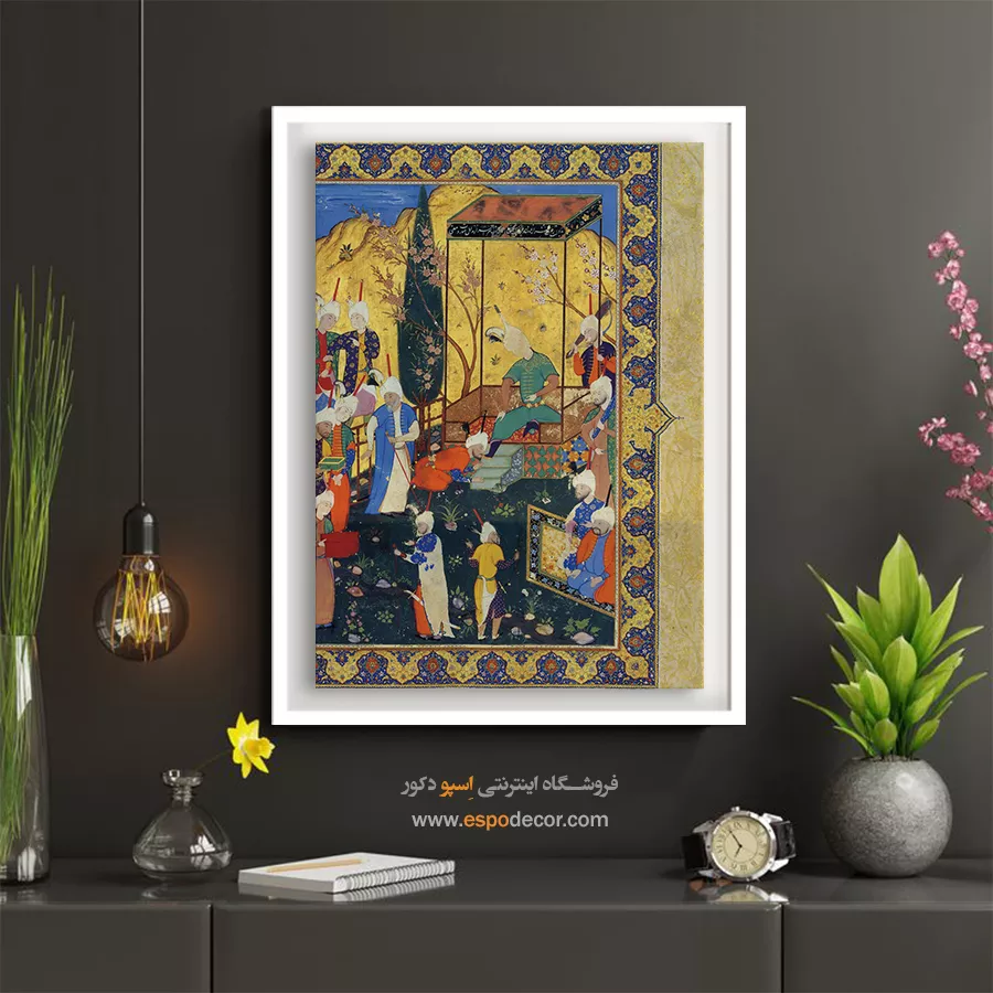 در ظرافت خطوط و درخشش رنگها، روایت هزارساله هنر مینیاتور و نگارگری ایرانی زنده میشود. این تابلو نقاشی ایرانی، یادگاری فاخر از میراث فرهنگی ایران برای خانهای آراسته و روحنواز است.